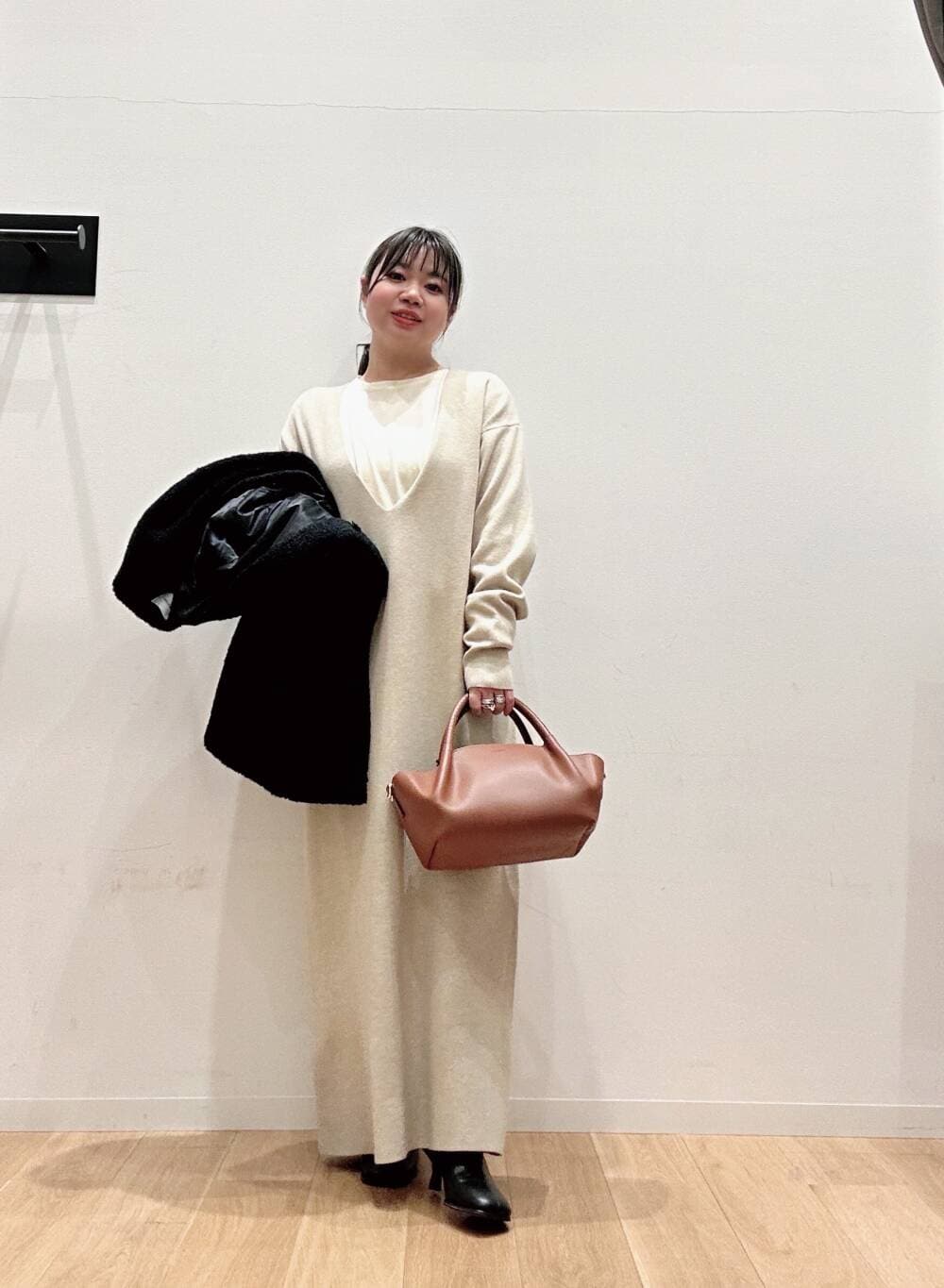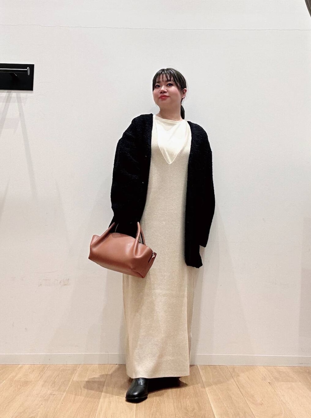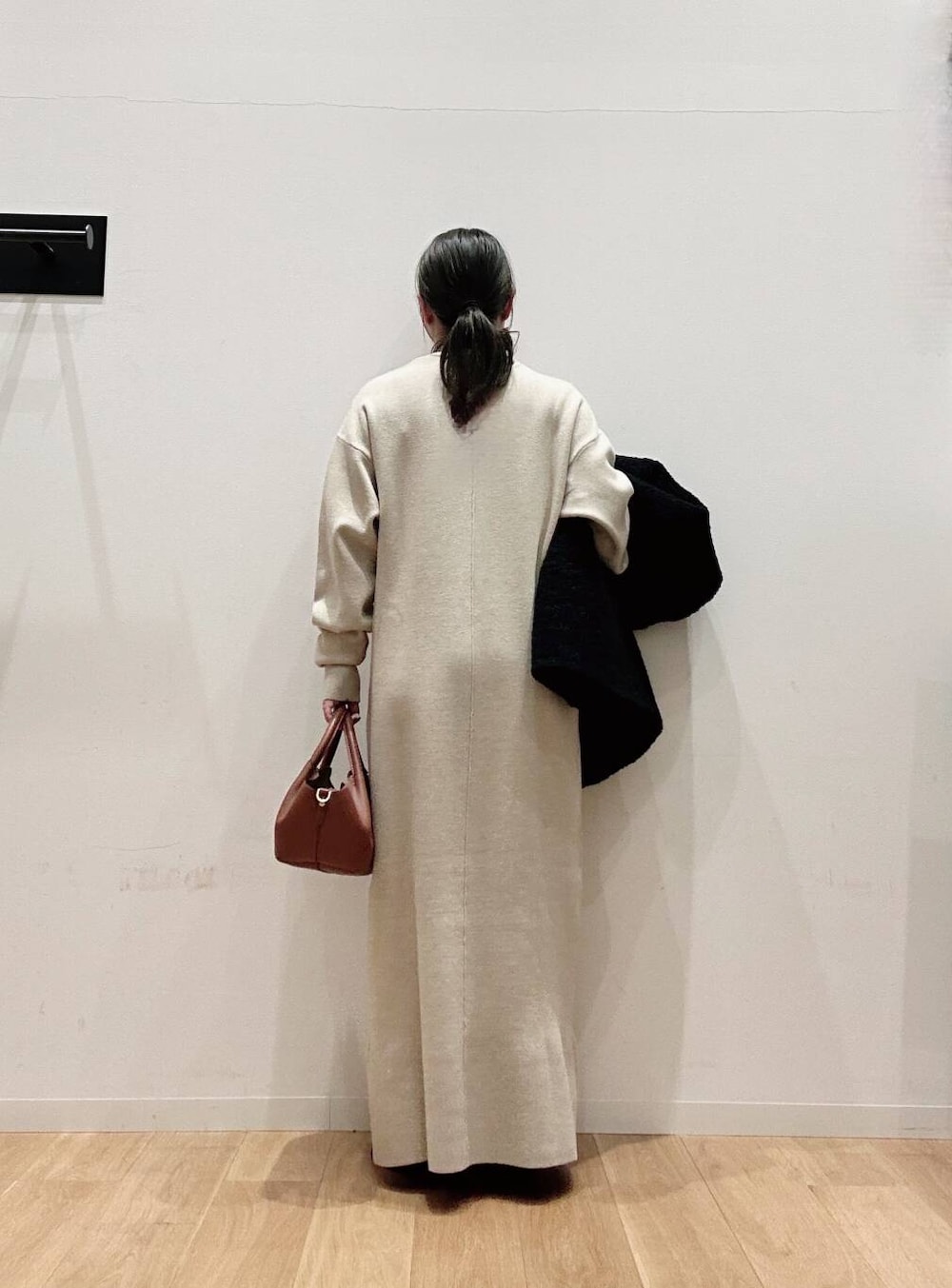 シンプルに合わせやすいとコクーンコートとニットワンピースとでコーディネートしてみました🎶🔴