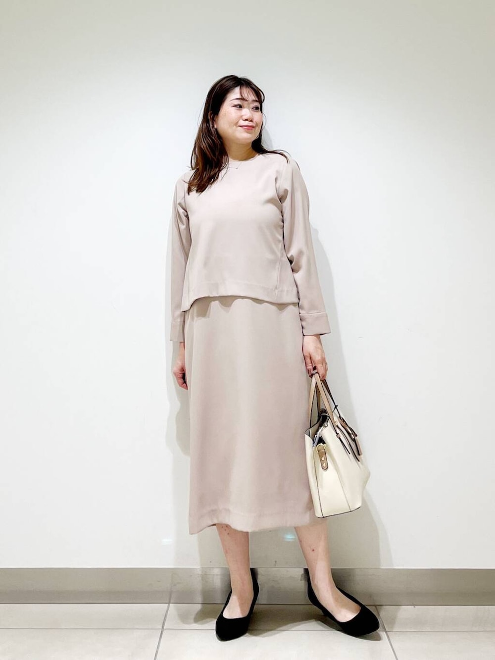 一枚持っておくと安心なワンピースです☆ベージュは優しい印象に見せてくれます☆