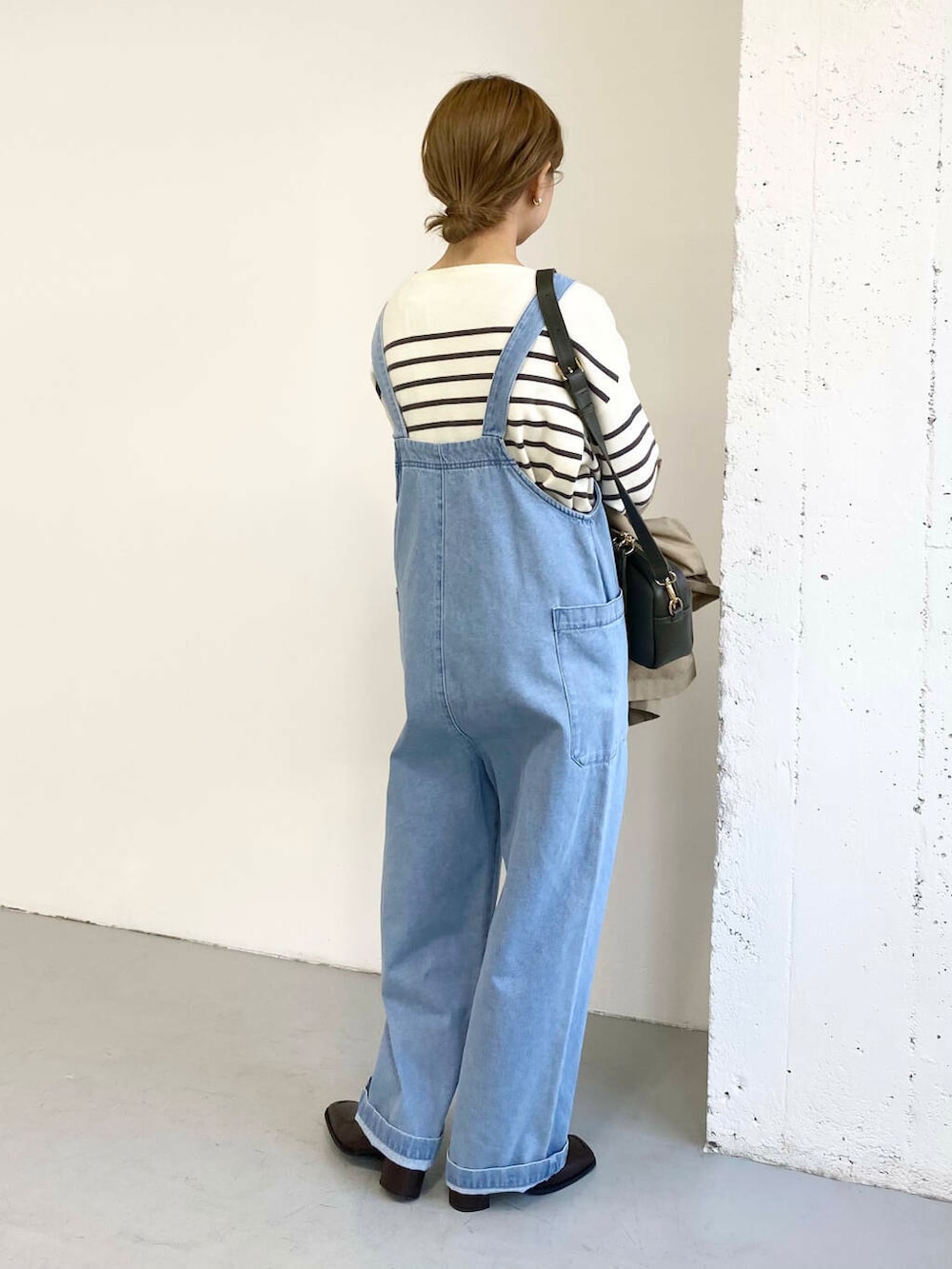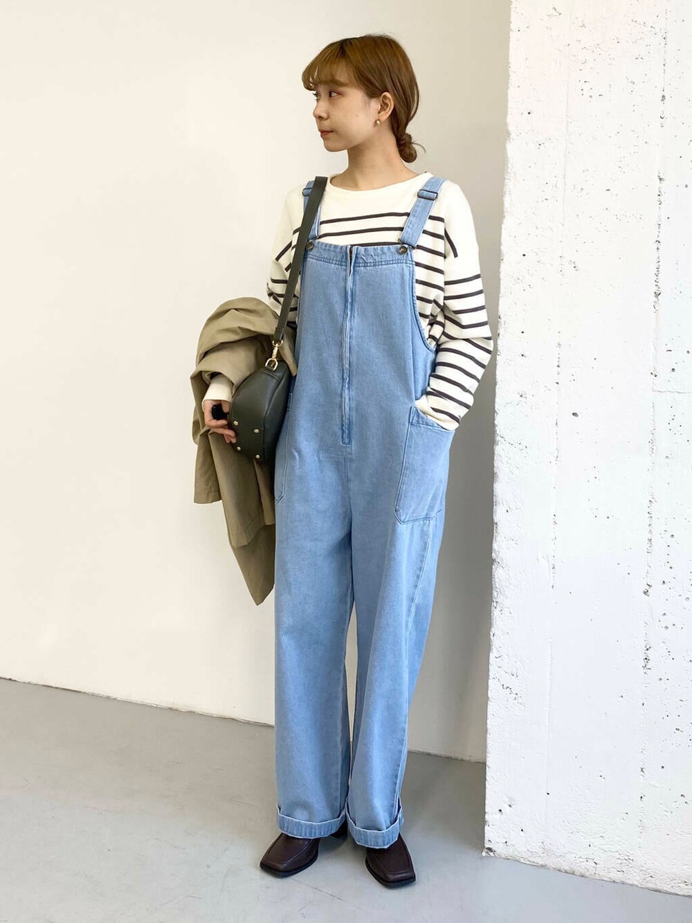 中にニットを合わせたり、温かくなればTシャツやブラウスとのコーディネートも可愛いですよ^^