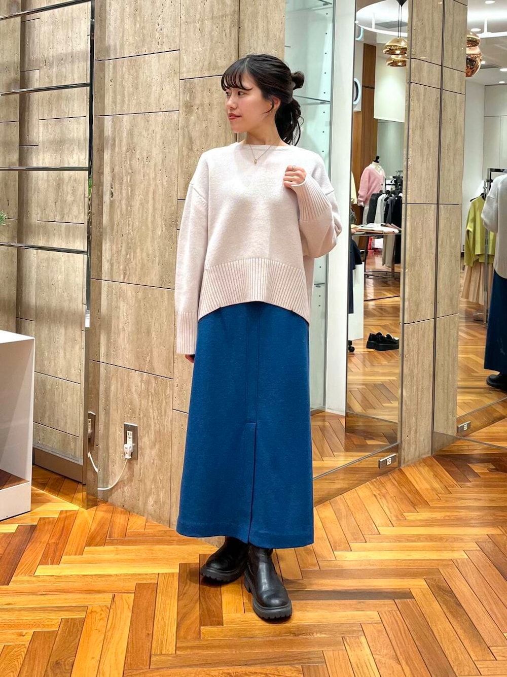 差し色にブルーのスカートでアクセントをつけてみました☆