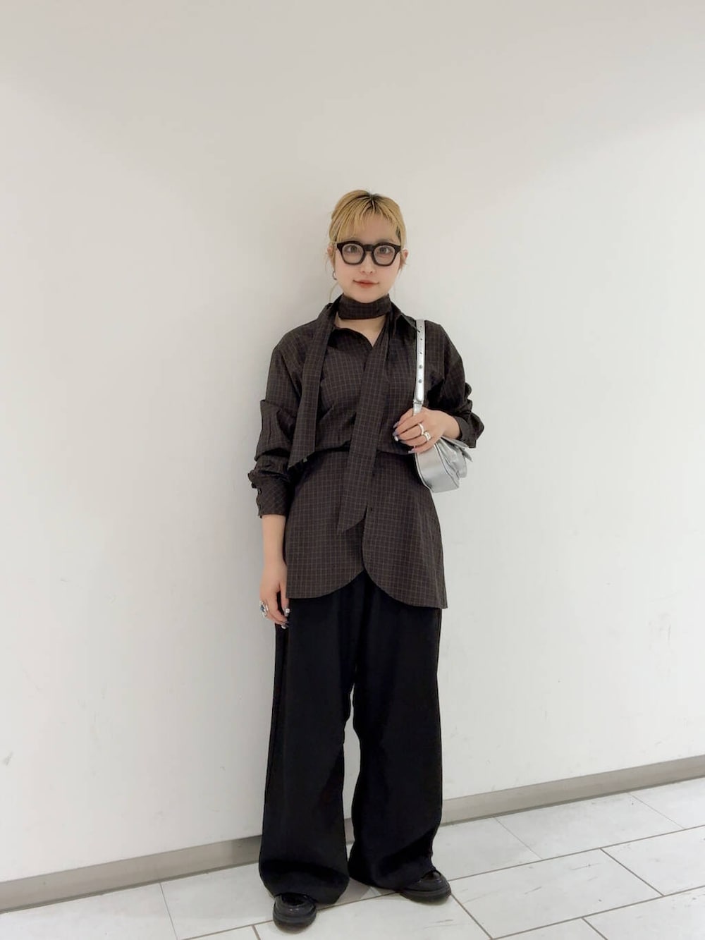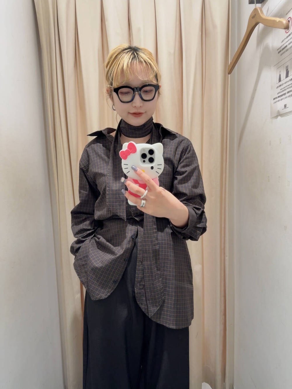 1発目はこのチェックシャツ!ウエストマークもできてボウタイにもなります👔