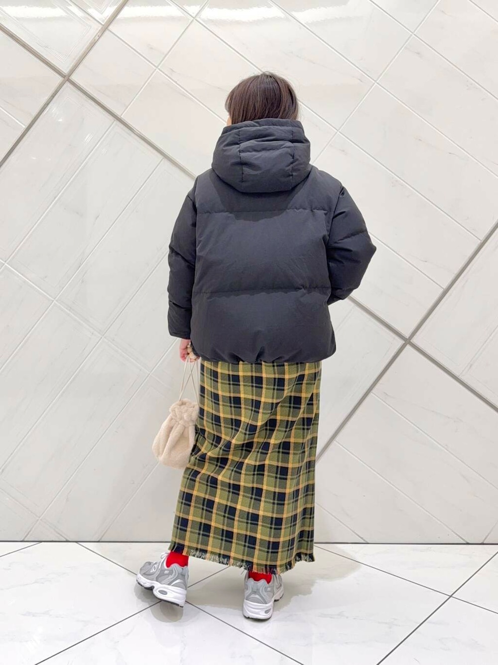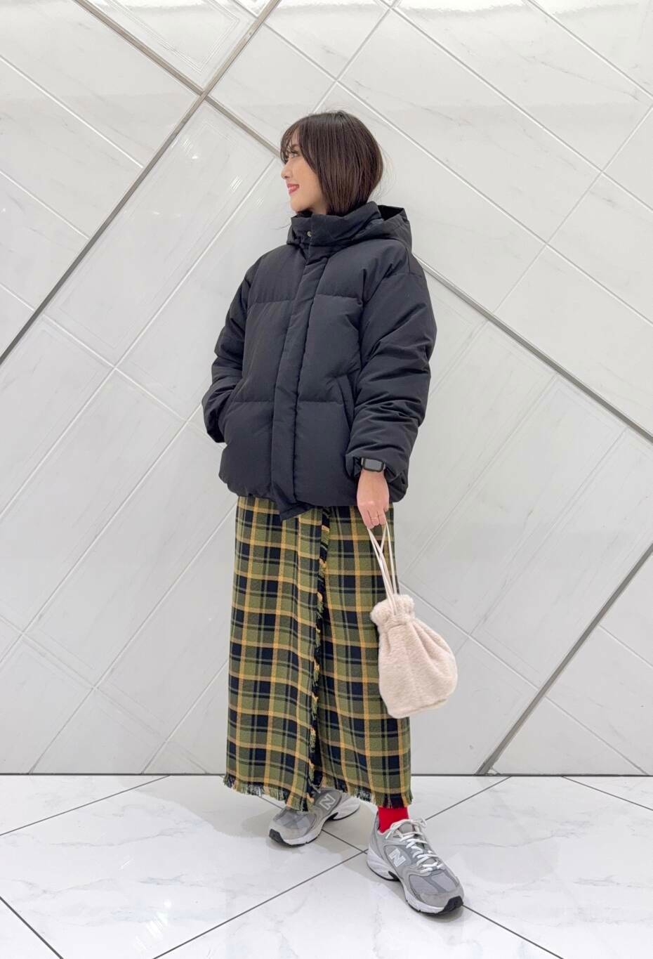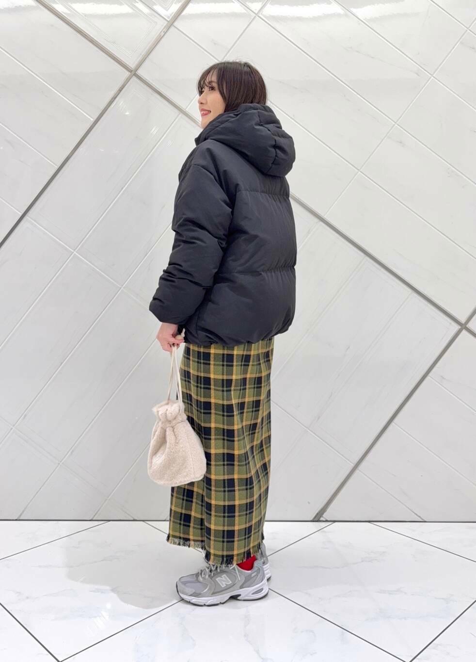 ダウンはドローコードで裾を絞ることができるのでコンパクトな印象になります。
