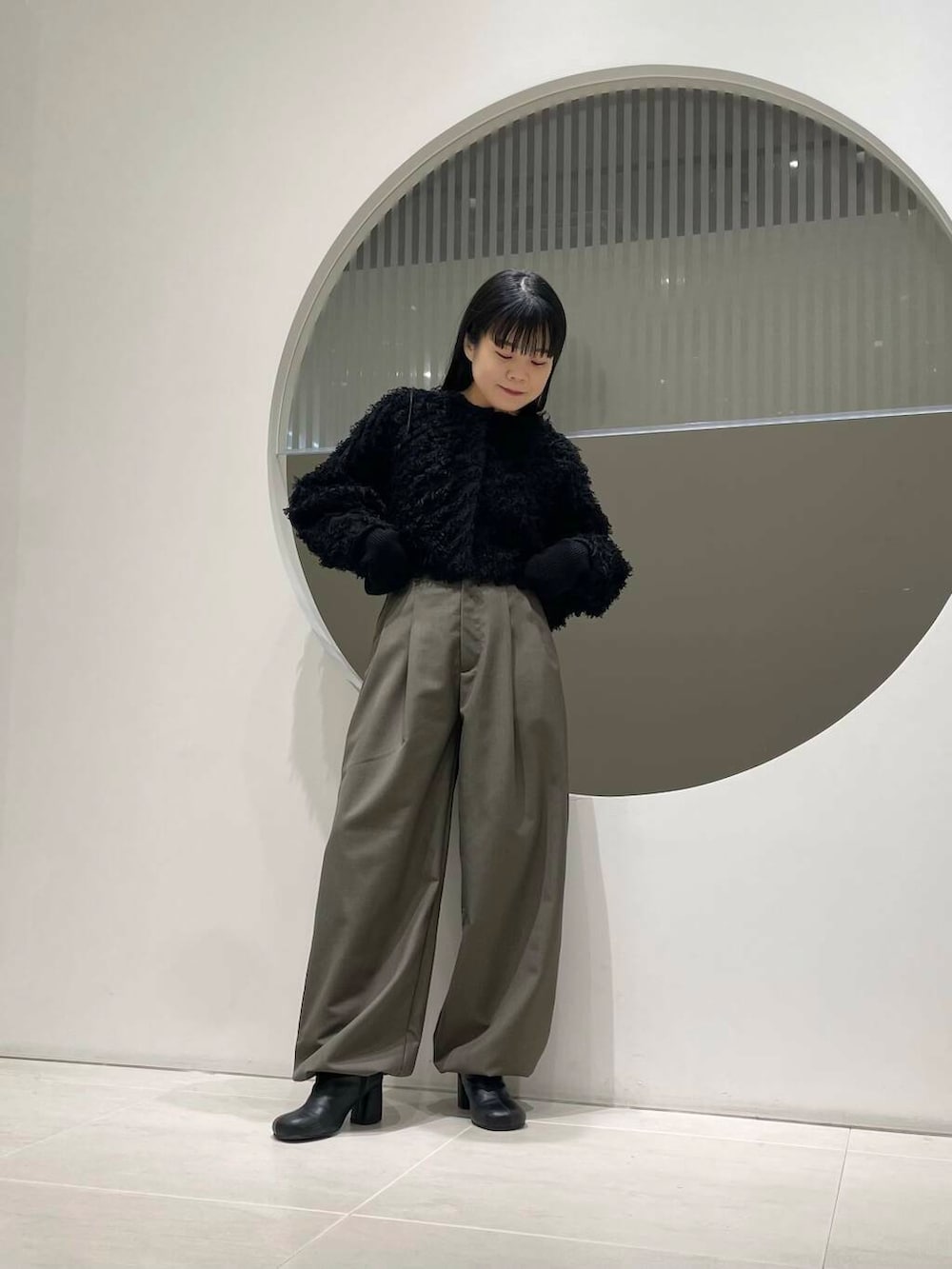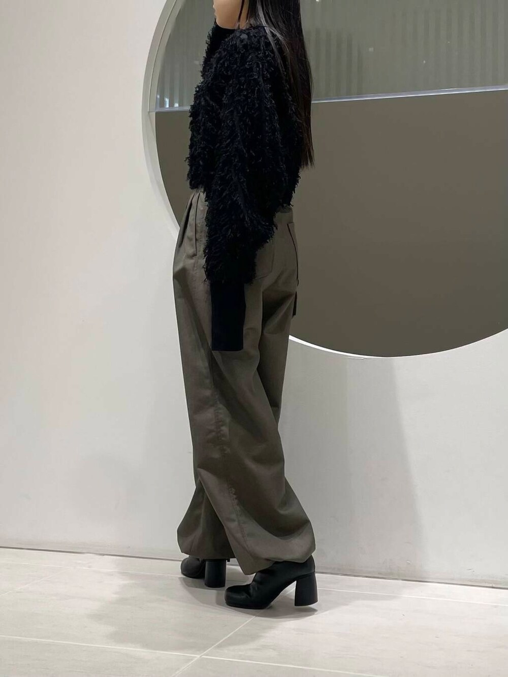 スラックス素材なのでカジュアルに見えすぎないのが◎