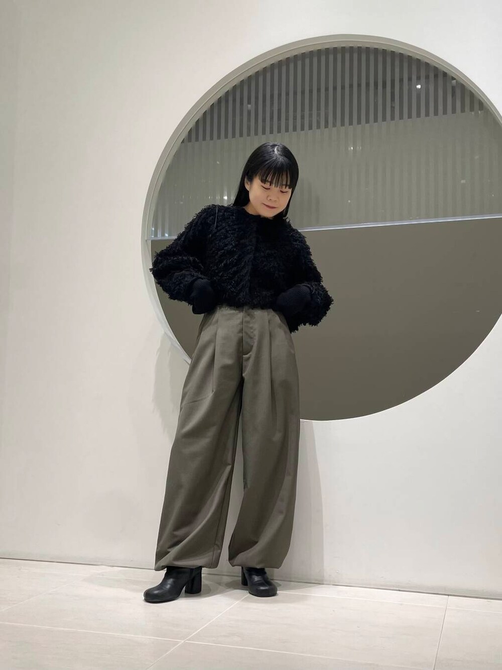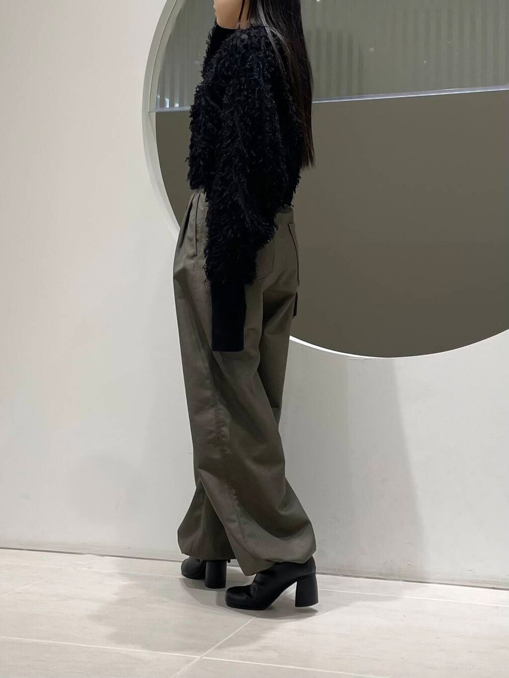 裾を絞ってカーゴパンツのシルエットにできます。絞らないと身長151cmの私には少し丈感が長かったので絞って着用しています。スラックス素材なのでカジュアルになりすぎないのが◎