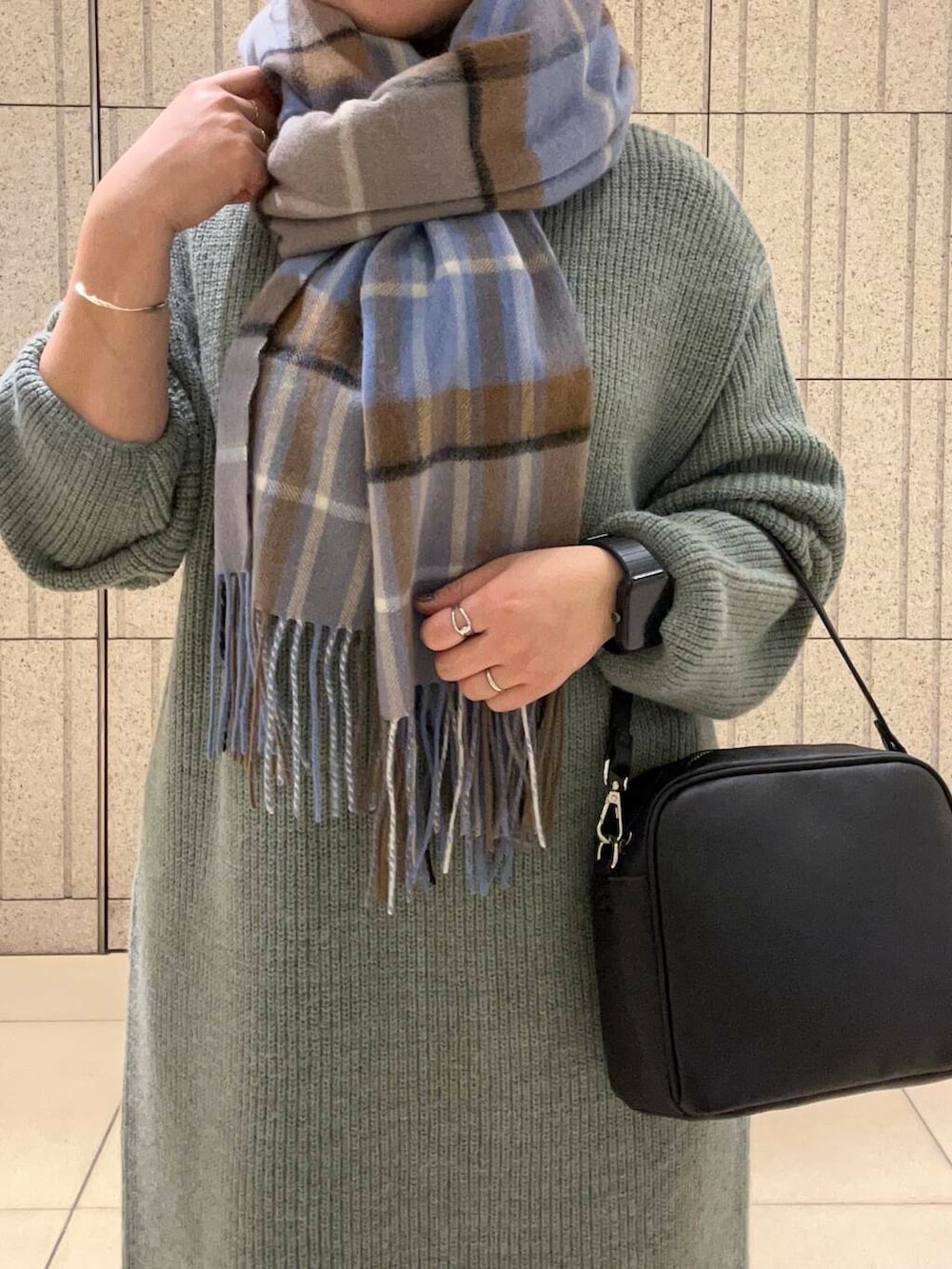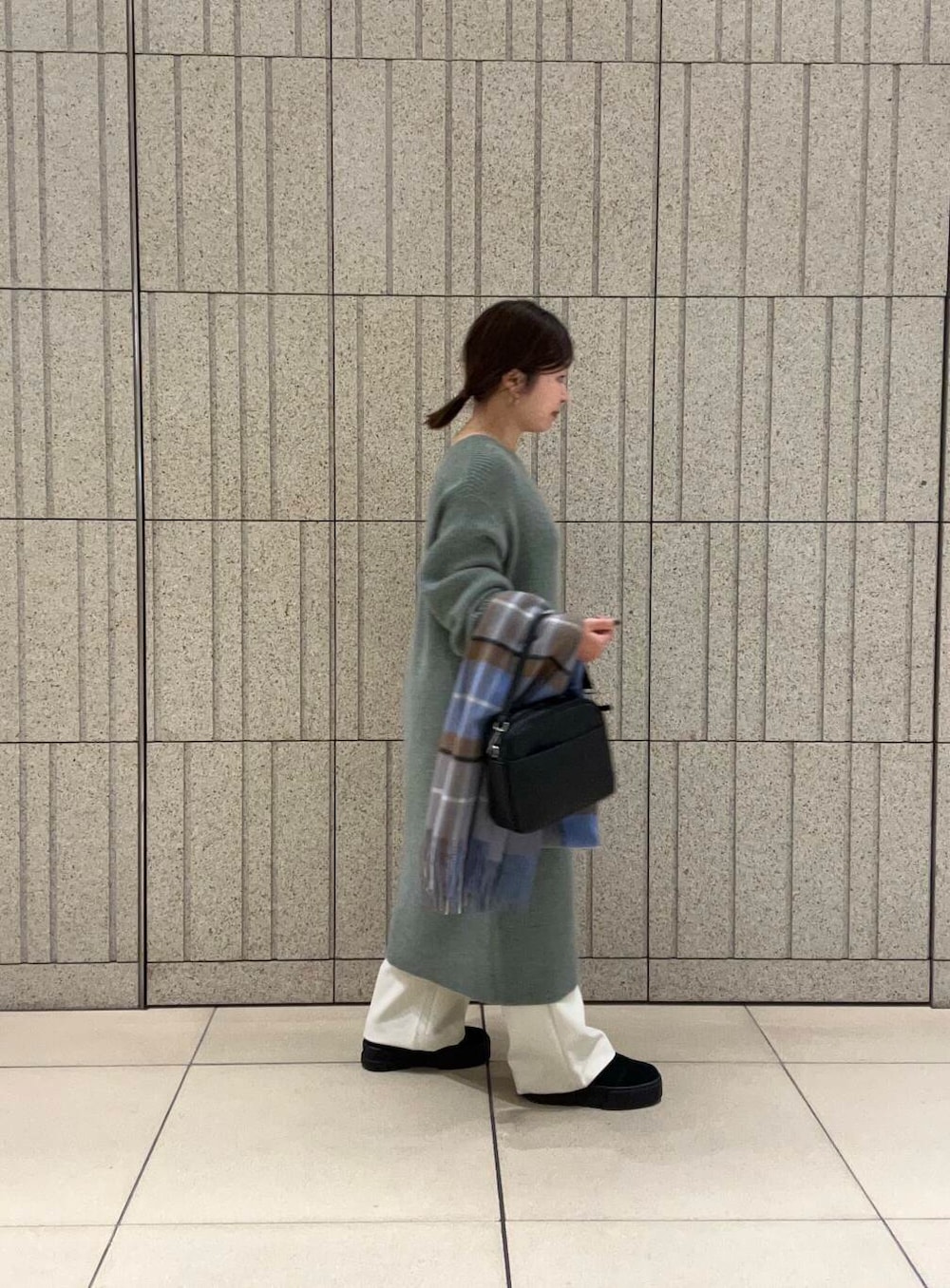 全体に淡いカラーのコーデなので、小物はブラックでまとめました。