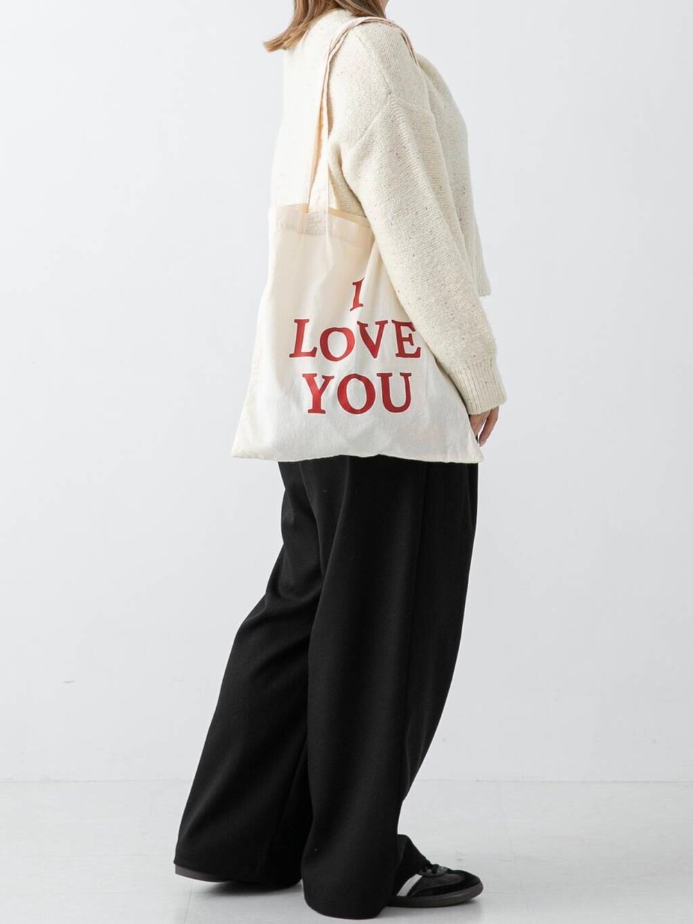 I LOVE YOUのロゴが目を引くトートバッグをポイントに♪