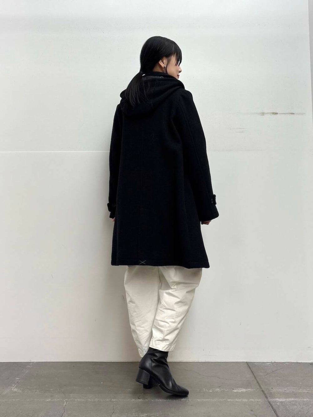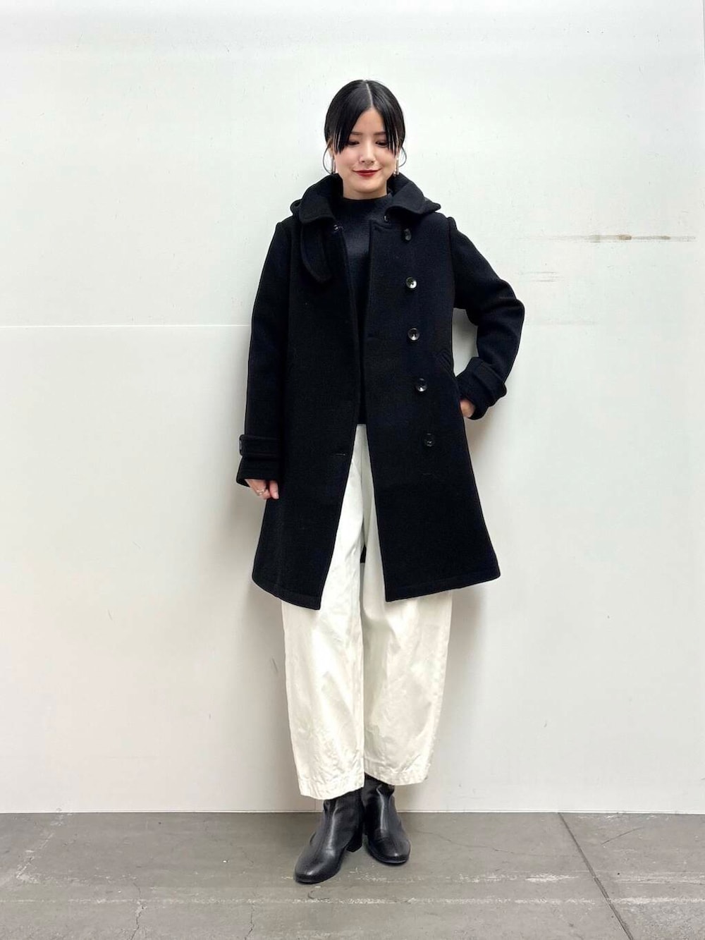 細身でカチッとした雰囲気ですが、フードがついているのでカジュアルにも着やすいです!