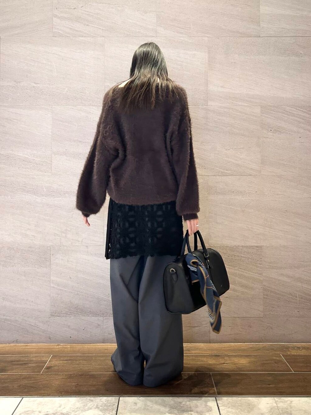 着心地も良いシャギーニットは、Vネックなのでスッキリみえして、春先まで着やすいアイテムです!