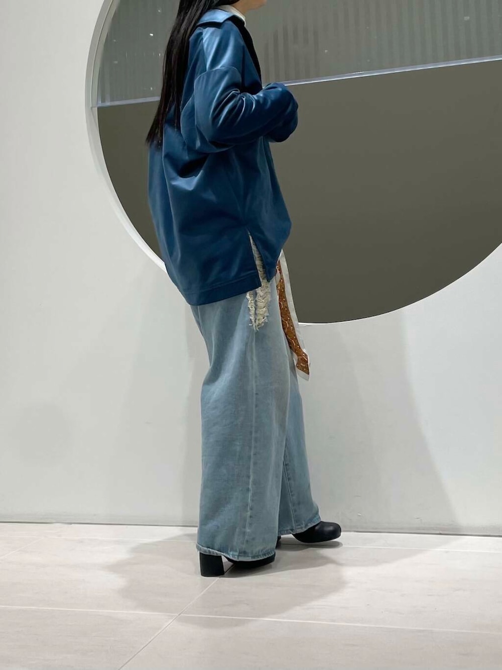 サイドのダメージがポイントのデニム。