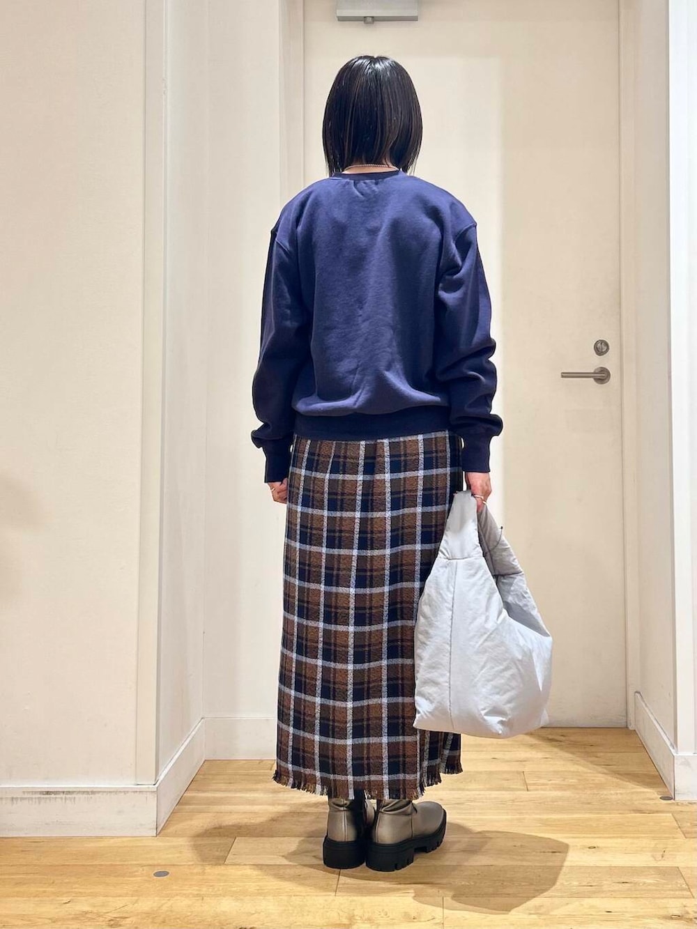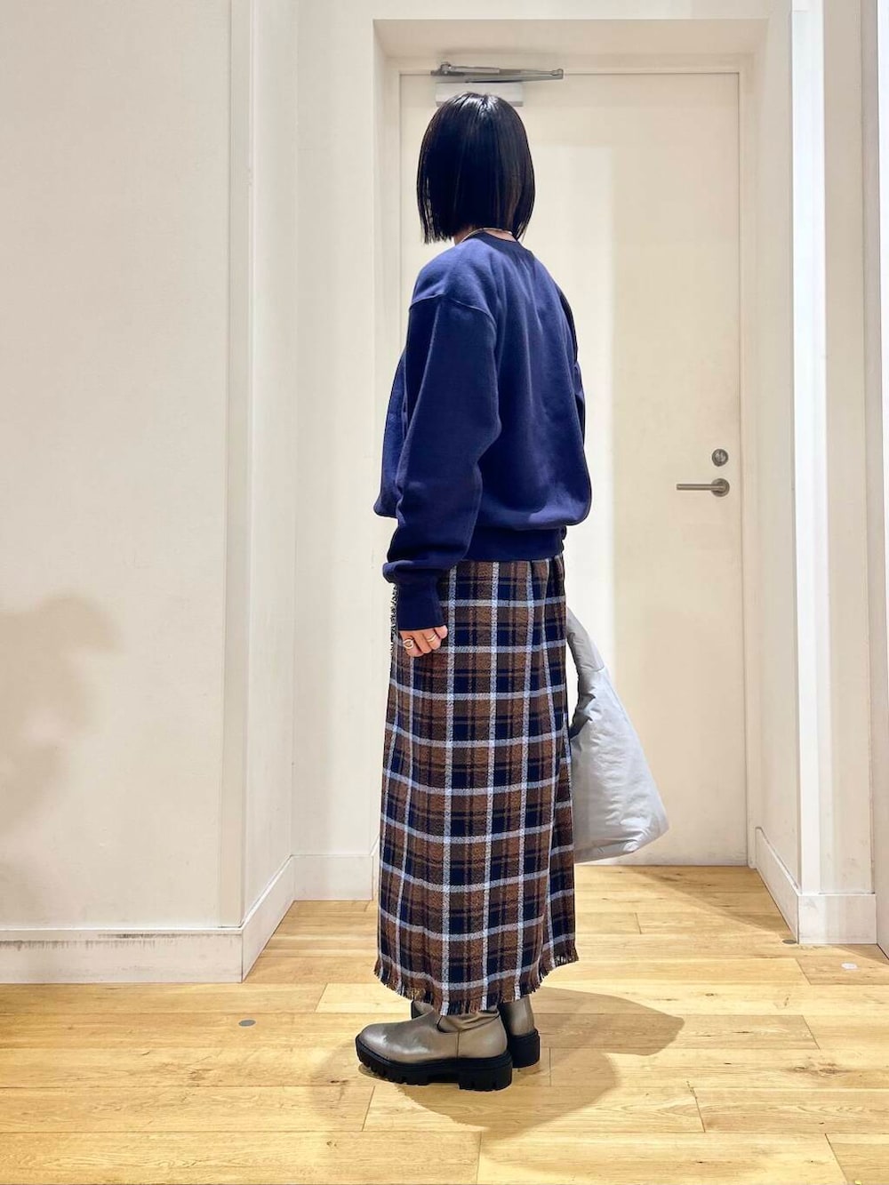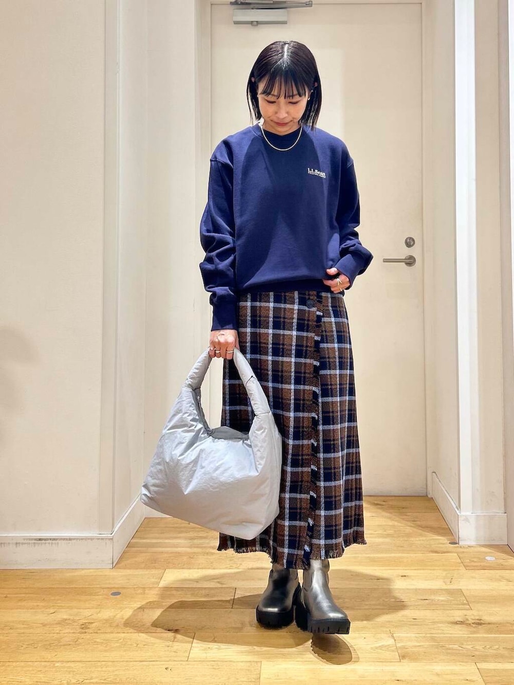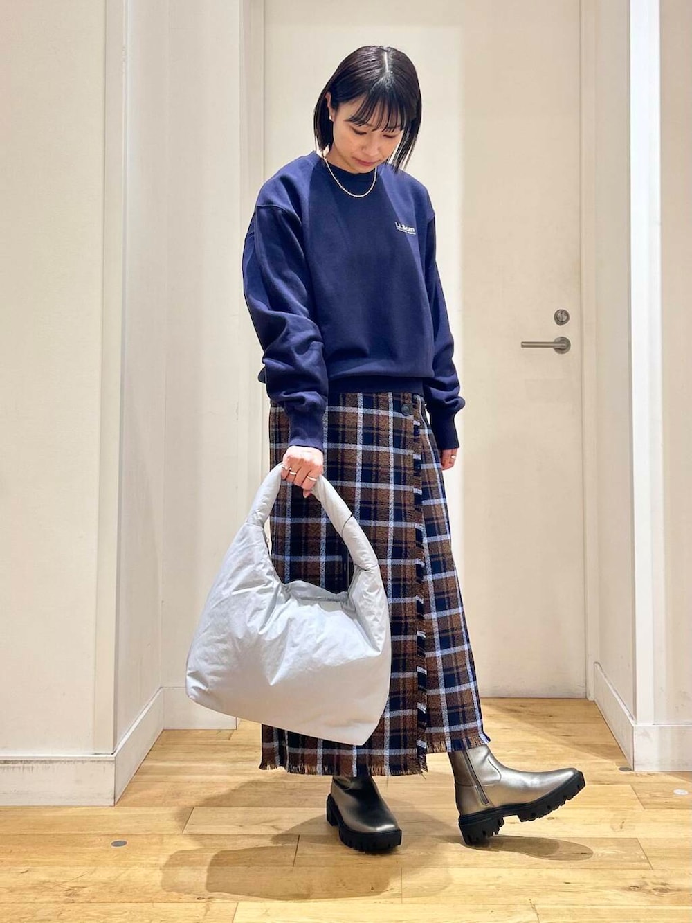 メンズライクなアイテムなので、チェックのスカートと合わせて女性らしさもプラスしてみました!