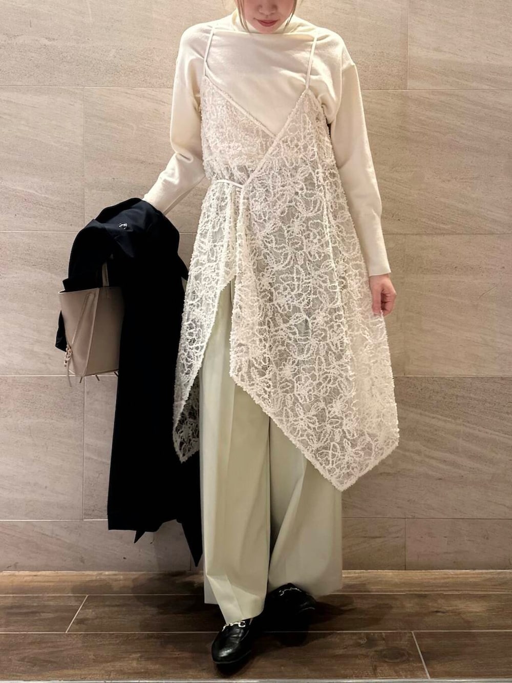 レイヤードしているレースキャミワンピはいつものスタイルに合わせるだけで周りと差がつくスタイリングにしてくれます✨✨