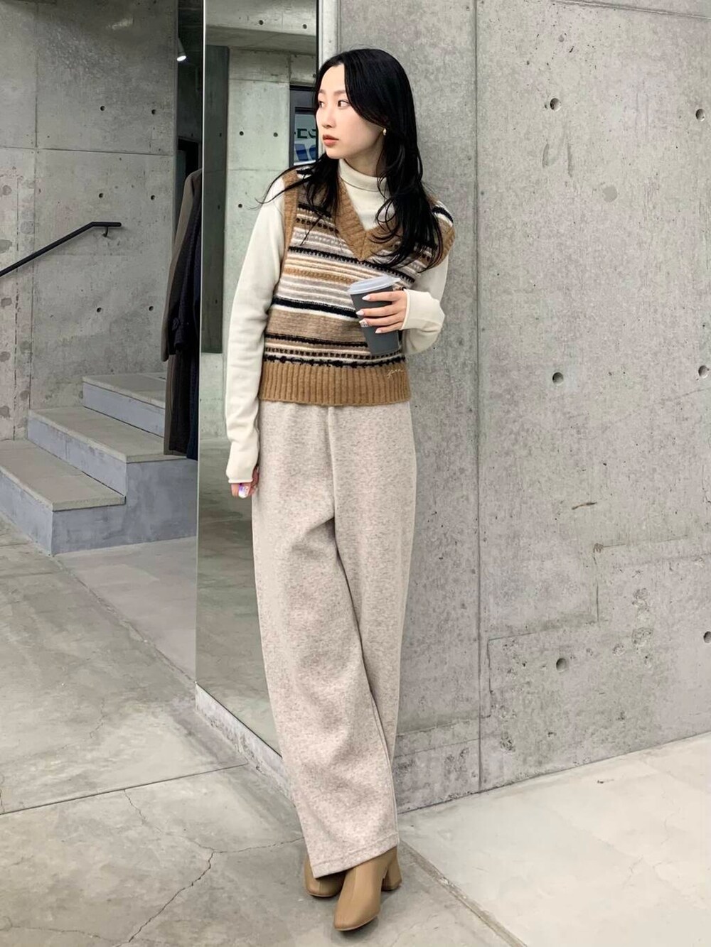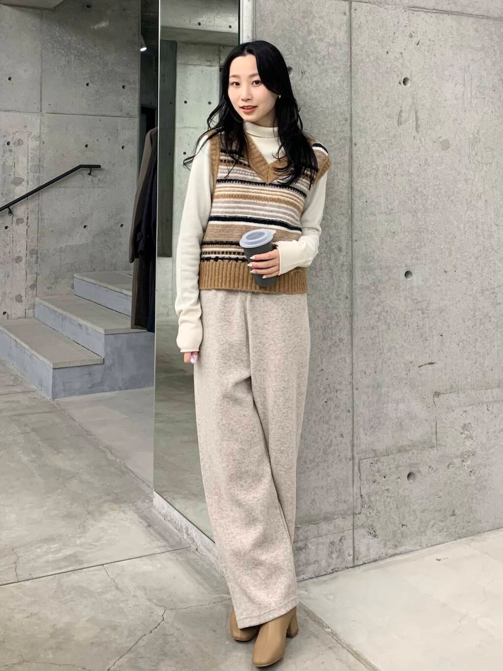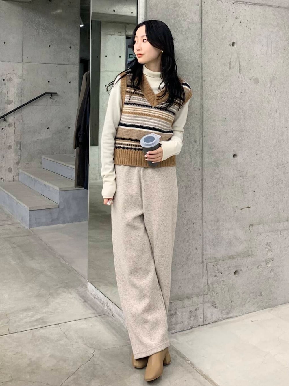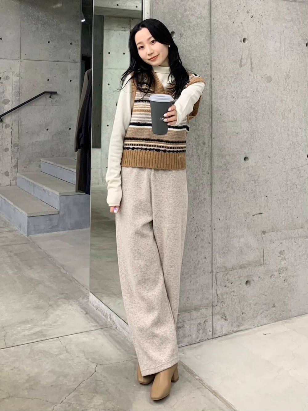 ひとつ前のブラウンのロングコートの中のコーデを公開!