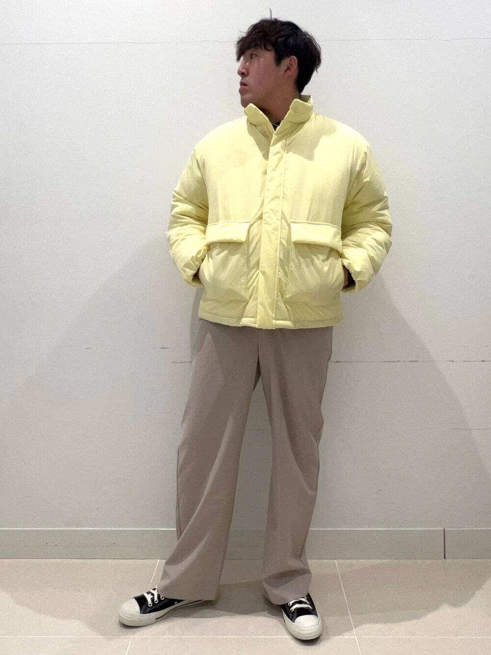 上下明るい色を使用してインナーで暗めの色で落とし込むコーデにしました!