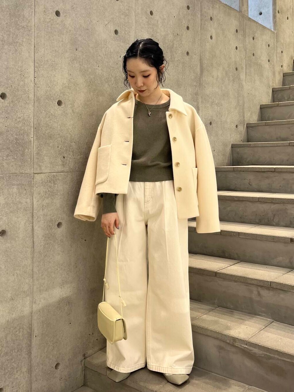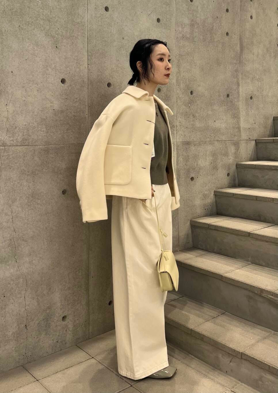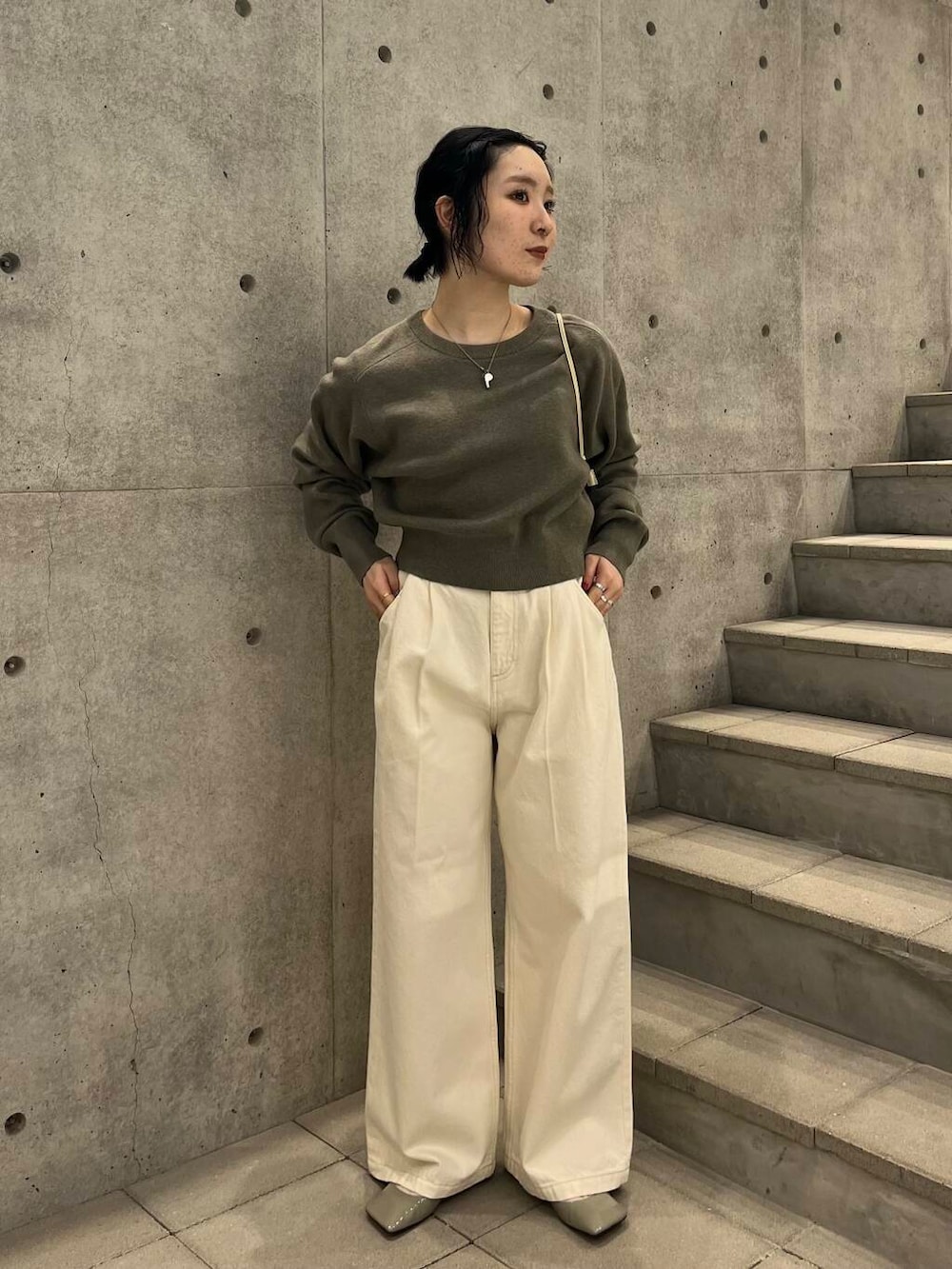 デニムですが、ツータックで形がキレイです!🪿PIPPICHICのスクエア形のパンプスもカーキですっきり合わせてます。