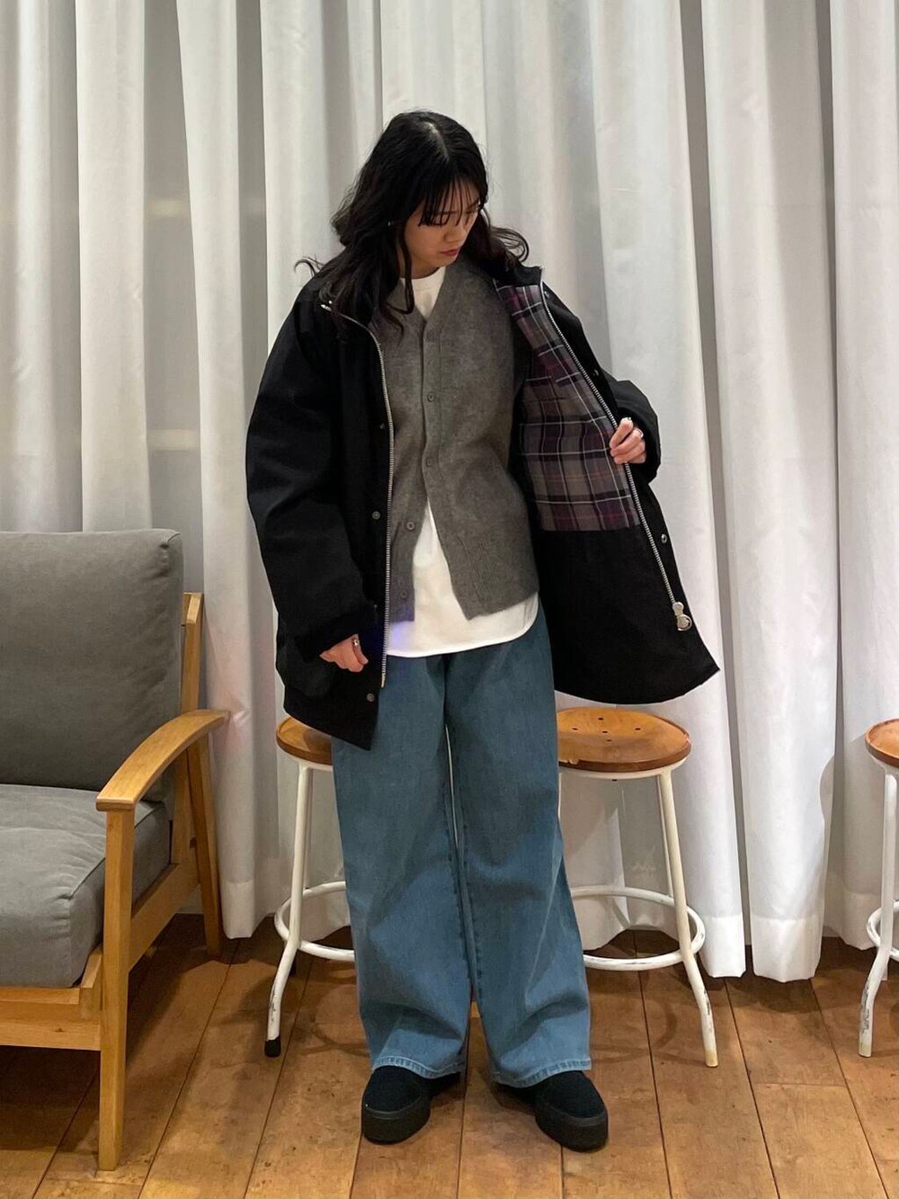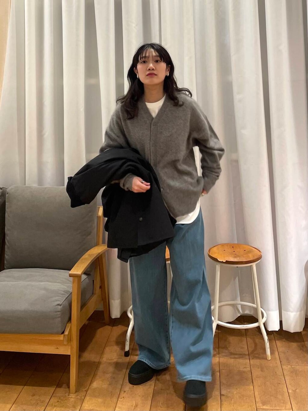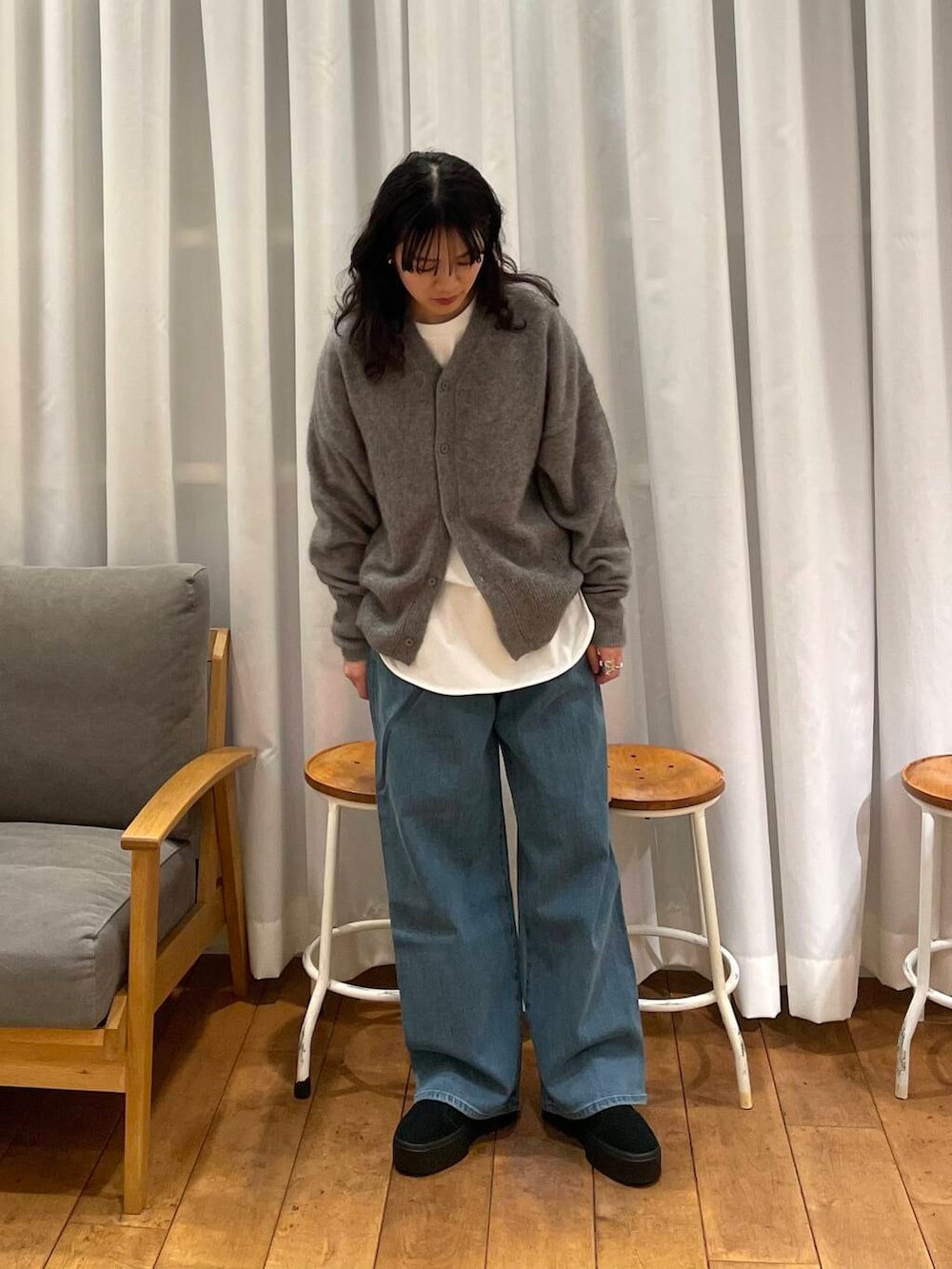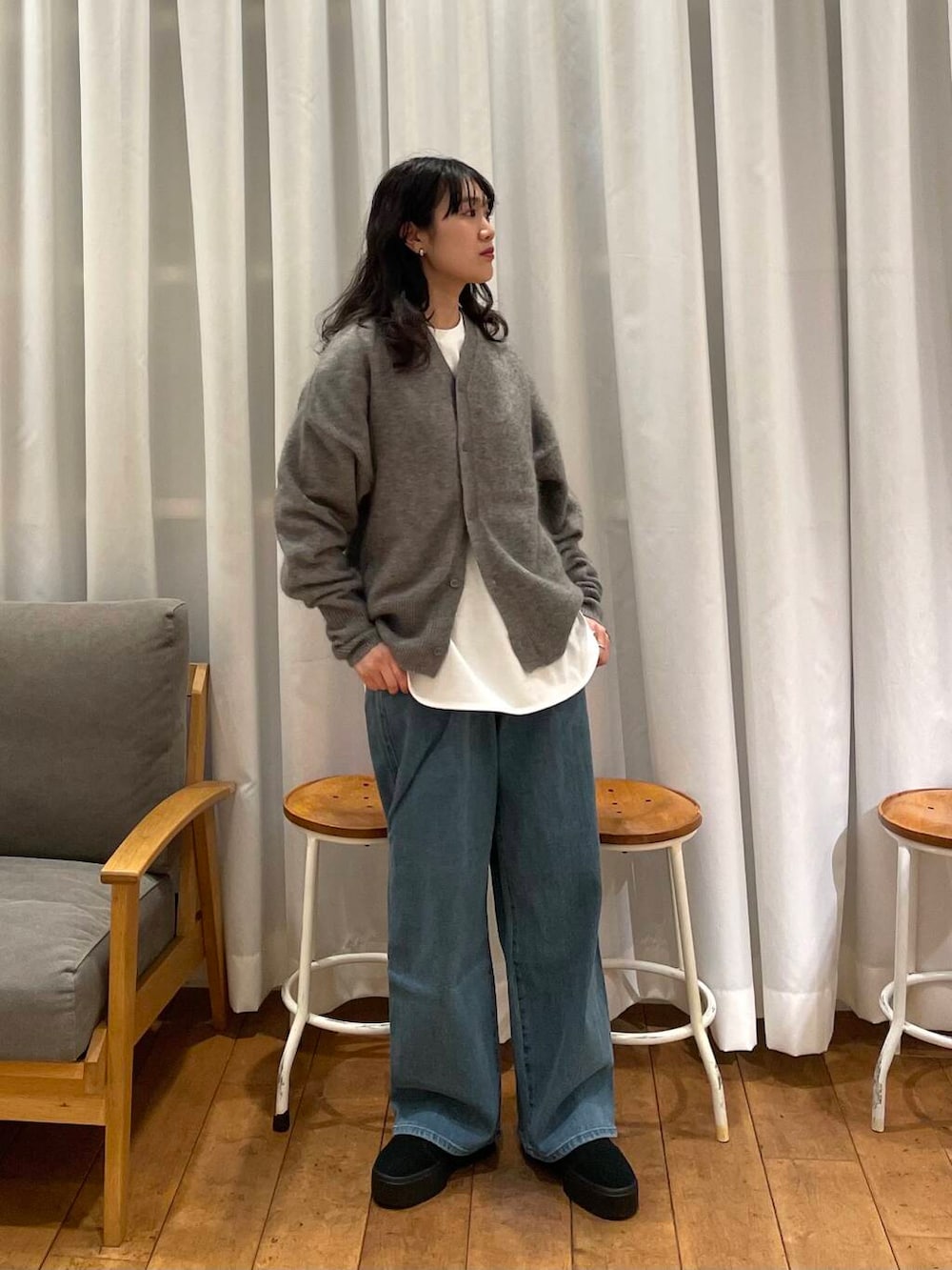また、中に来てるEKALのカーディガンもシンプルで使いやすく良いです!