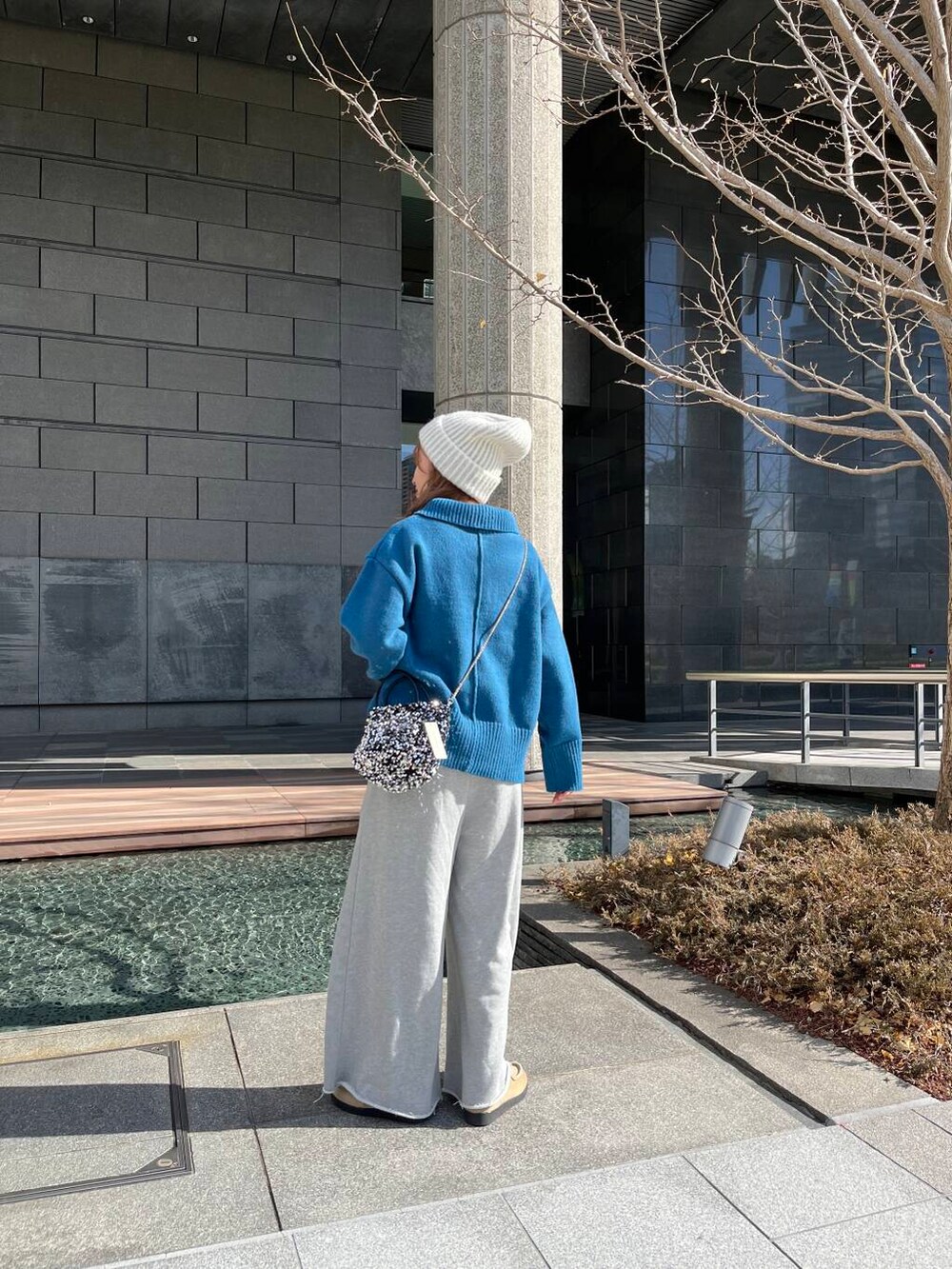 コーデのアクセントになるブルーのセーターが一押しです✨