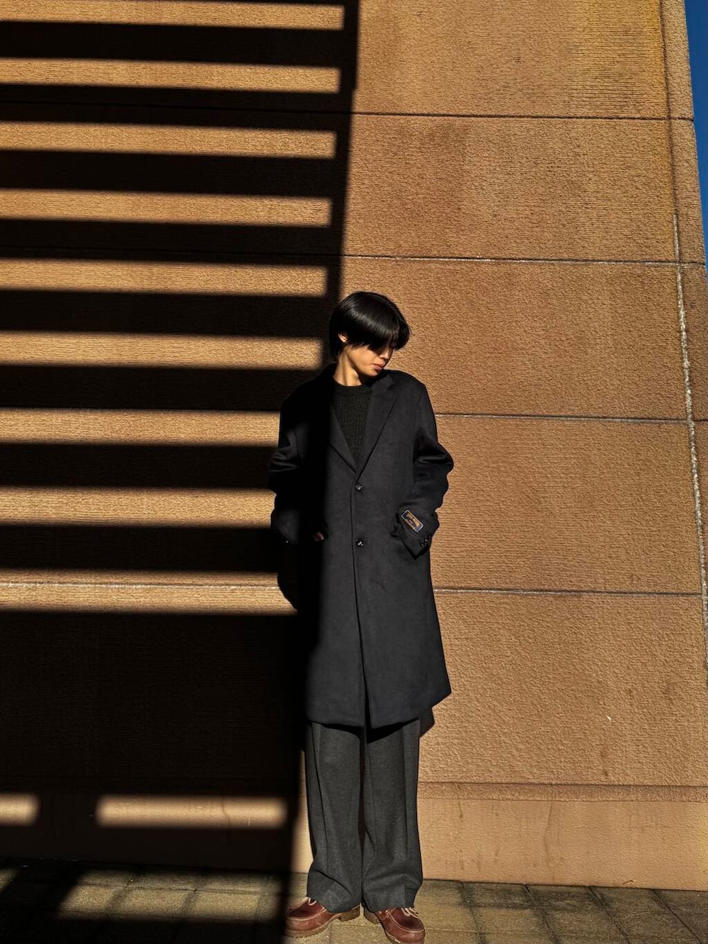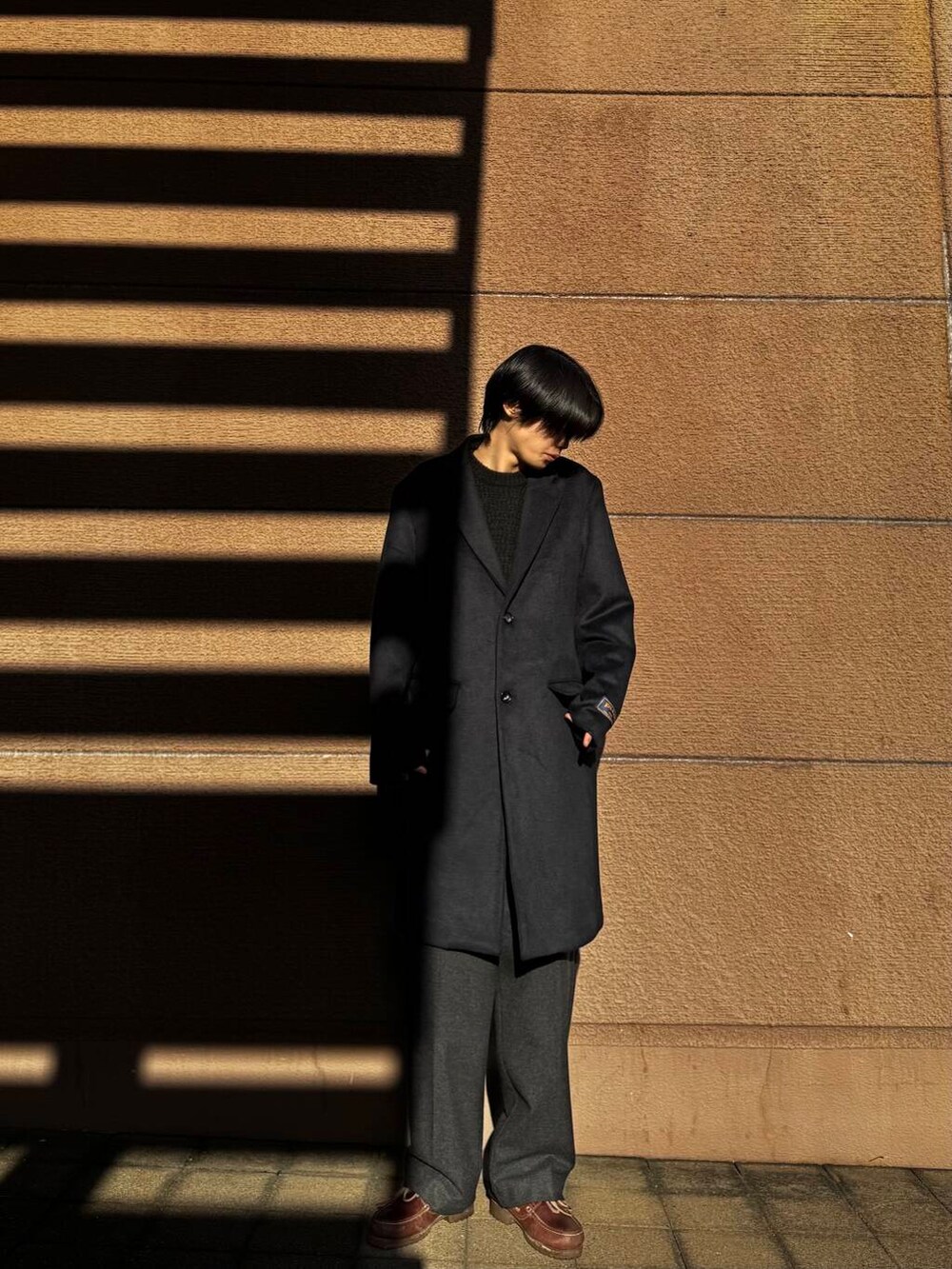今回のコーディネートはロング丈のウール混コートにニット、テーパードパンツを合わせたコーデです!コートはビジネスシーンでも使えるアイテムになっています‼︎アイテム3つともウールが入っているのでこれからの季節にぴったりなアイテムです‼︎ぜひ参考にしてください!!