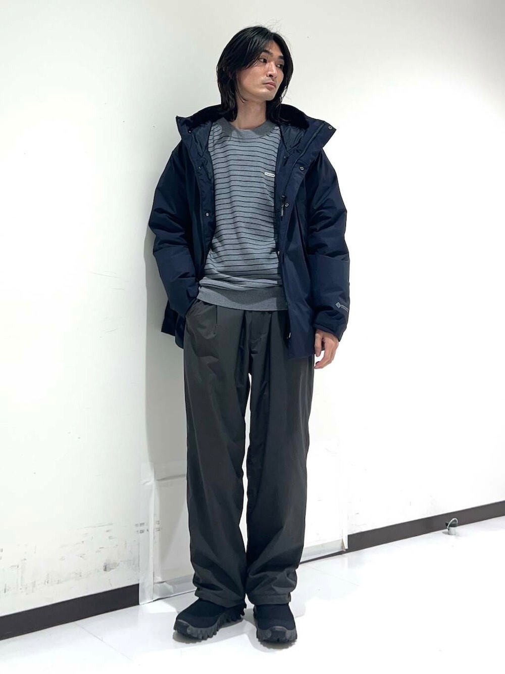 1枚でも充分すぎる保温性のあるダウンなので、インナーはライトにコットンニット1枚くらいのラフなスタイルで◎