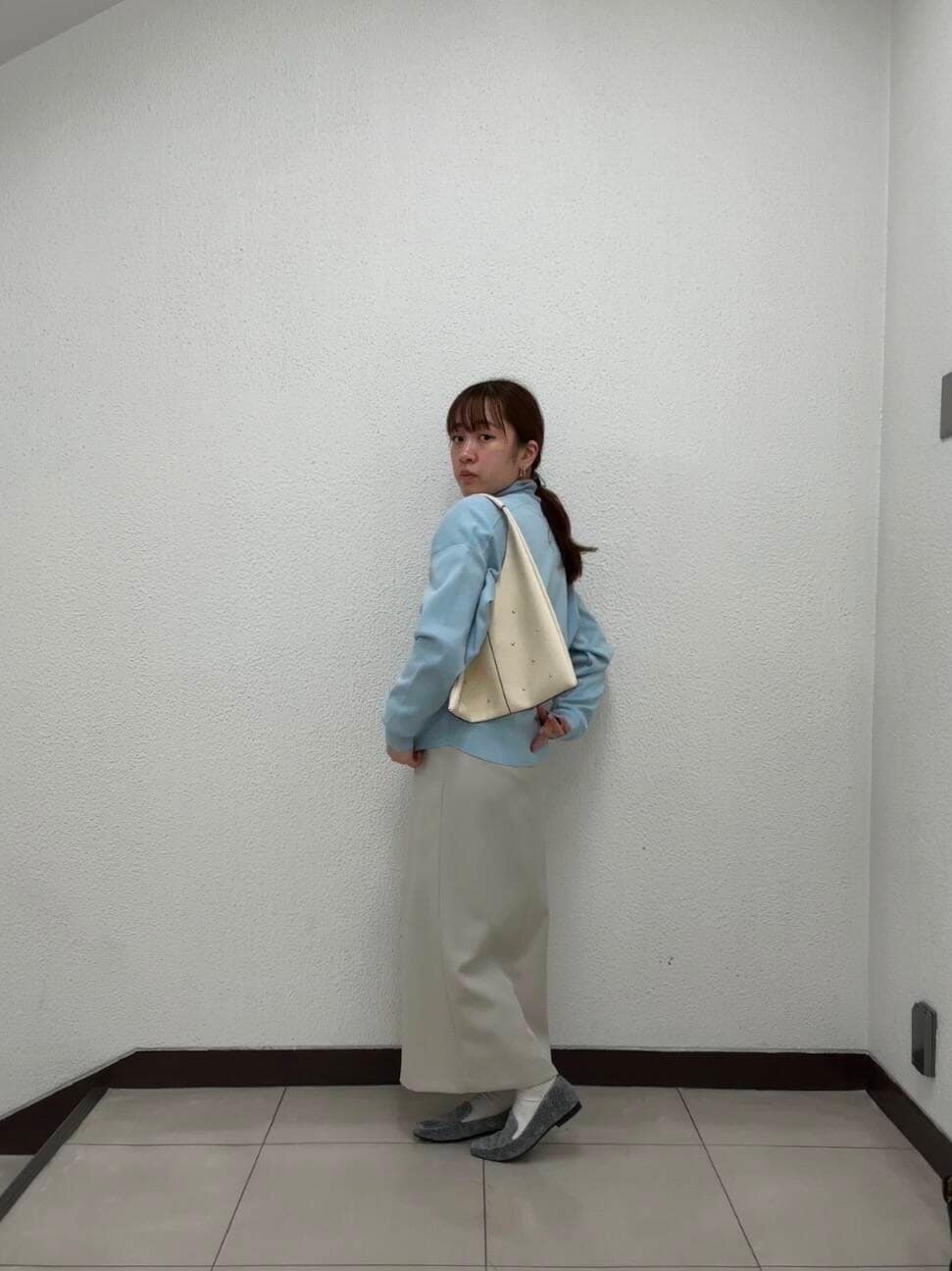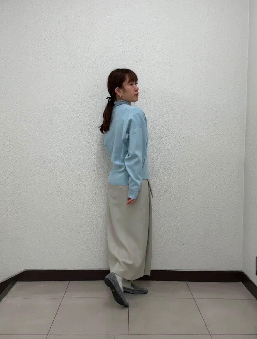 ライトブルーのカーディガンは春先も重宝しそうな生地感です◎