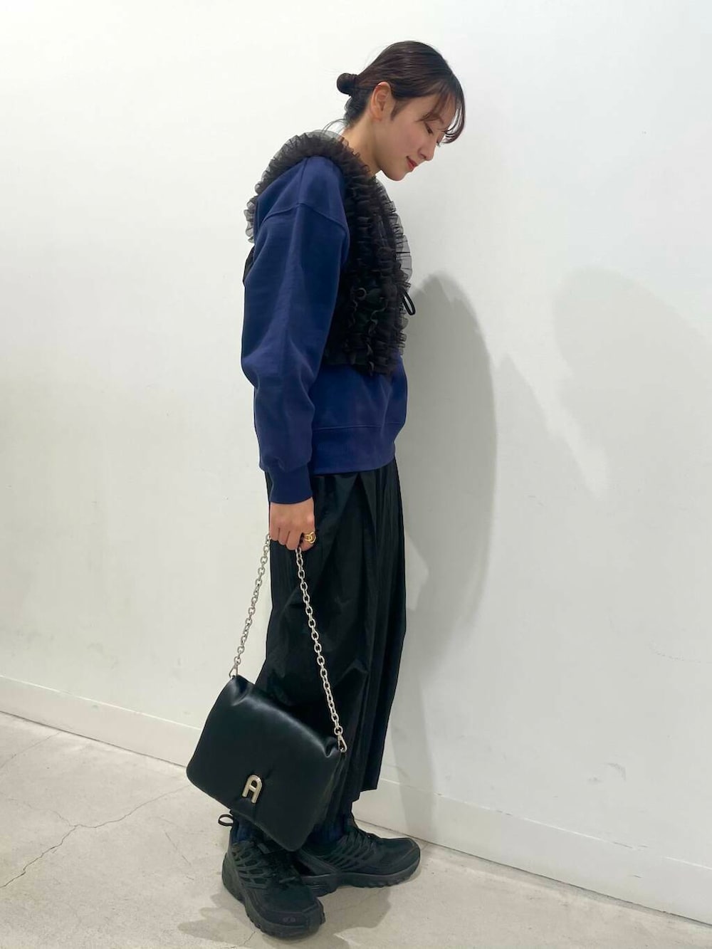 ブラックでまとめればチュールアイテムでも甘すぎず、抵抗なく着れます!