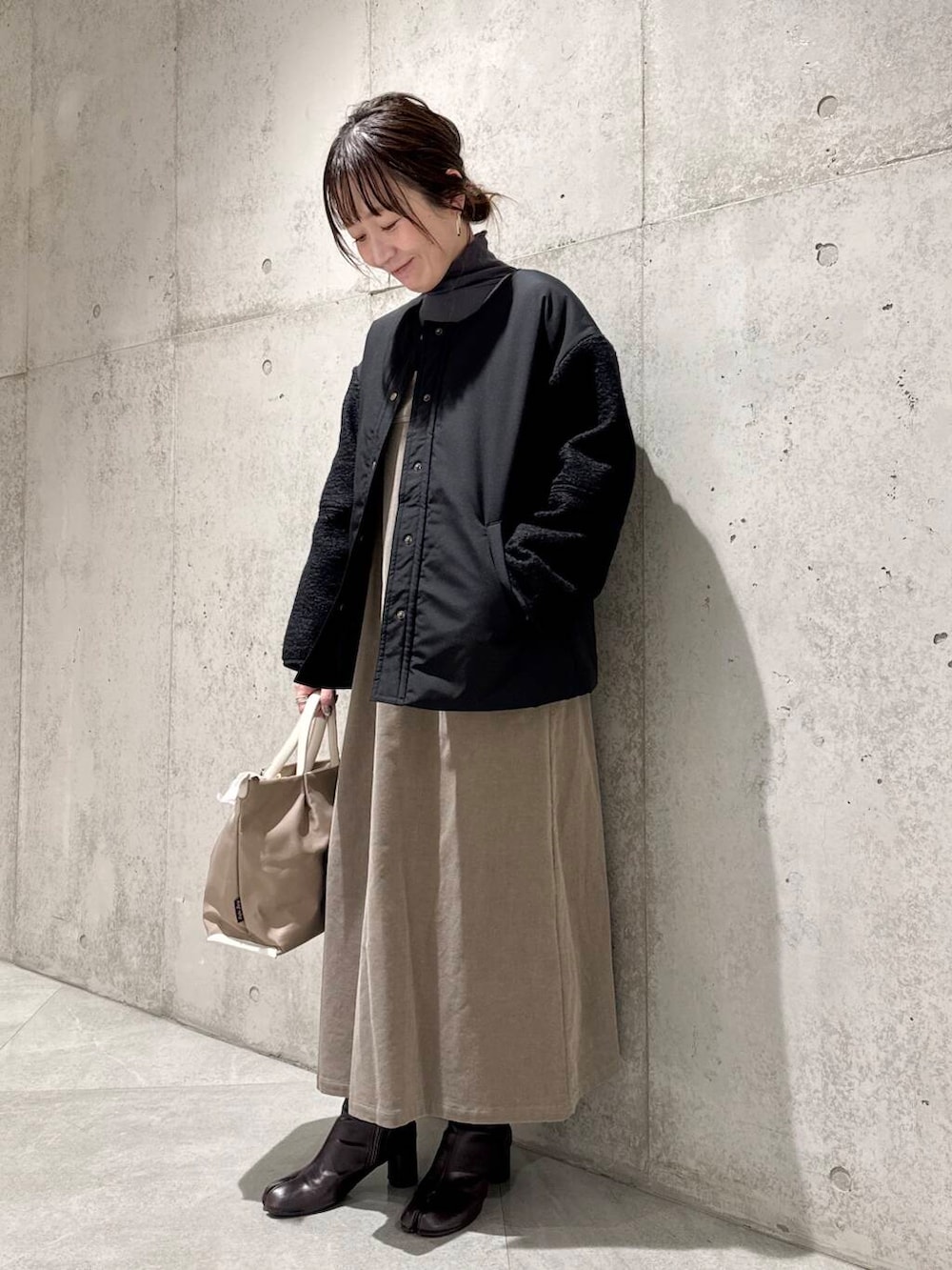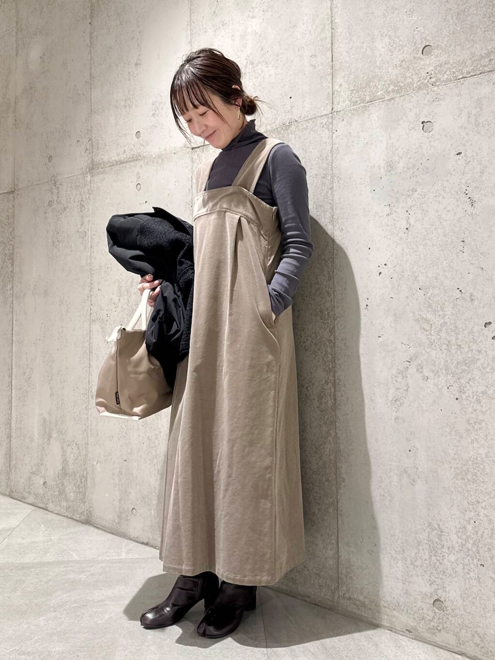 今回は、コーデュロイのワンピースとタートルネックをレイヤードしたコーディネートです。