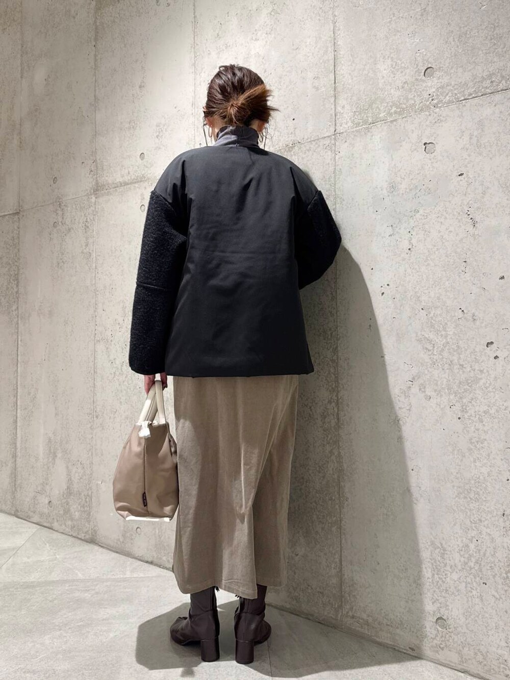 ゆったりとしたサイズ感で、ニットやスウェットを着ても着ぶくれしにくいアイテム。