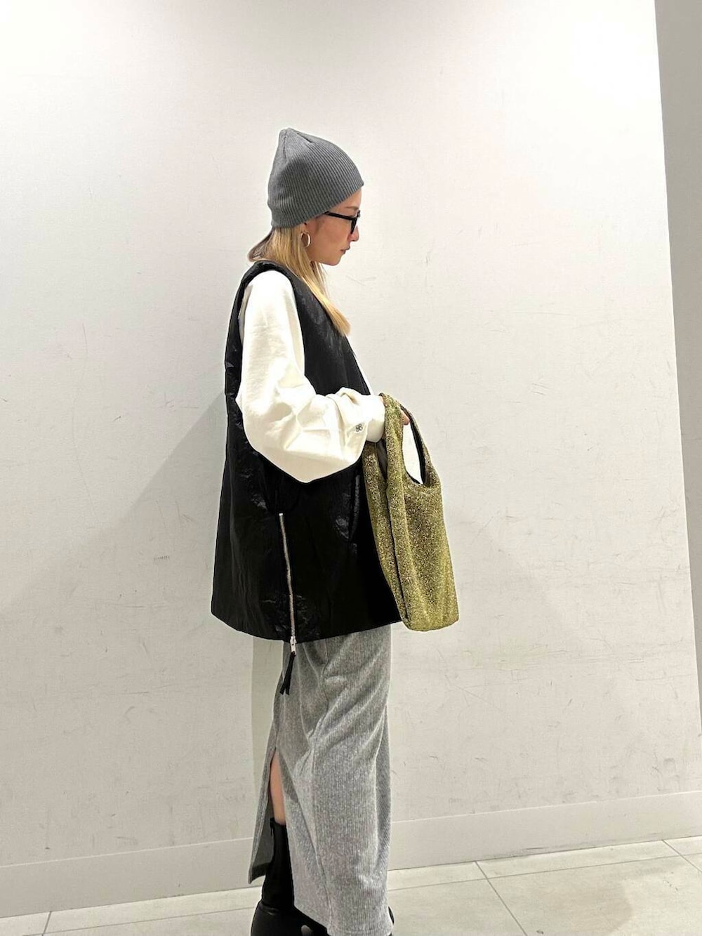 ベストはおしりがすっぽり隠れる丈で、両サイドのジップを開けるとコーデに抜け感がでます。
