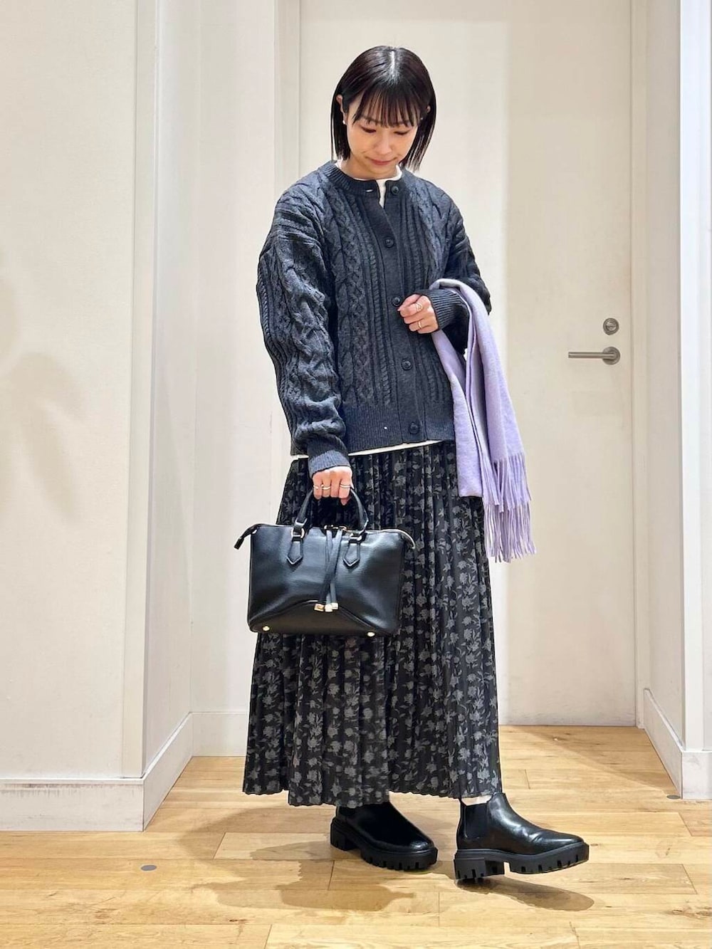スカートは、落ち着いたカラーのフラワープリントで派手になりすぎずコーディネートに取り入れやすいですよ◎
