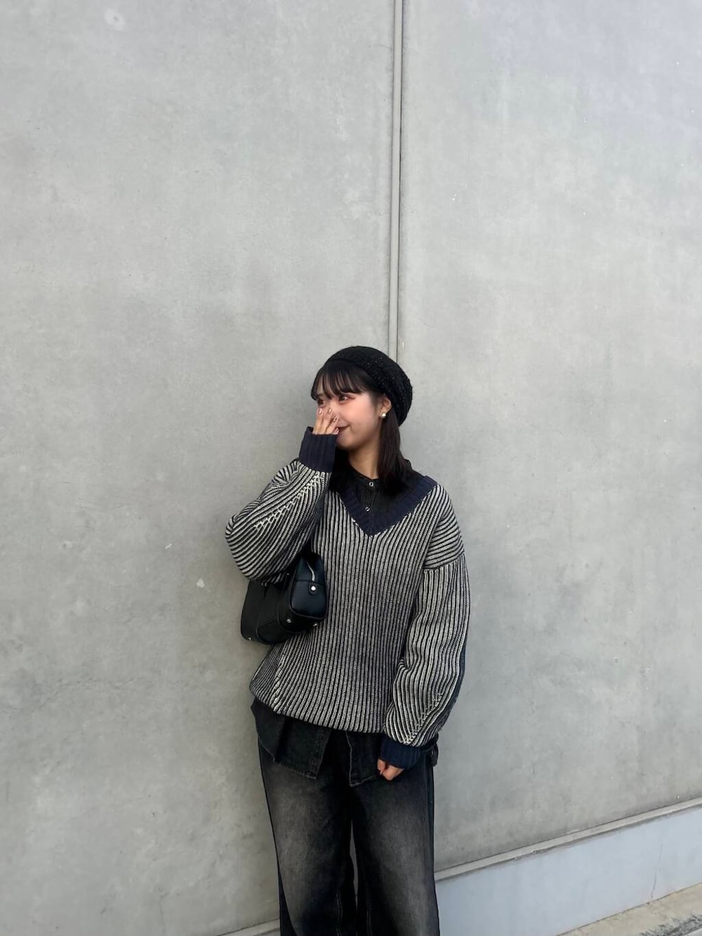 バイカラーの色合いが特徴的なニットを使ったカジュアルコーデ組んでみました✨