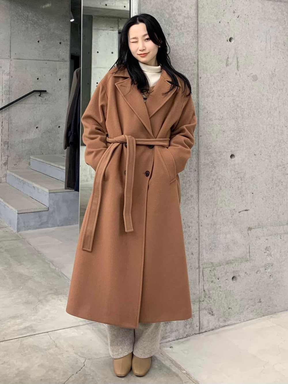このコート、ロングのコートなのにとっても軽いんです!そして、形がとってもきれい。。スタンドカラーにだってできちゃいます!