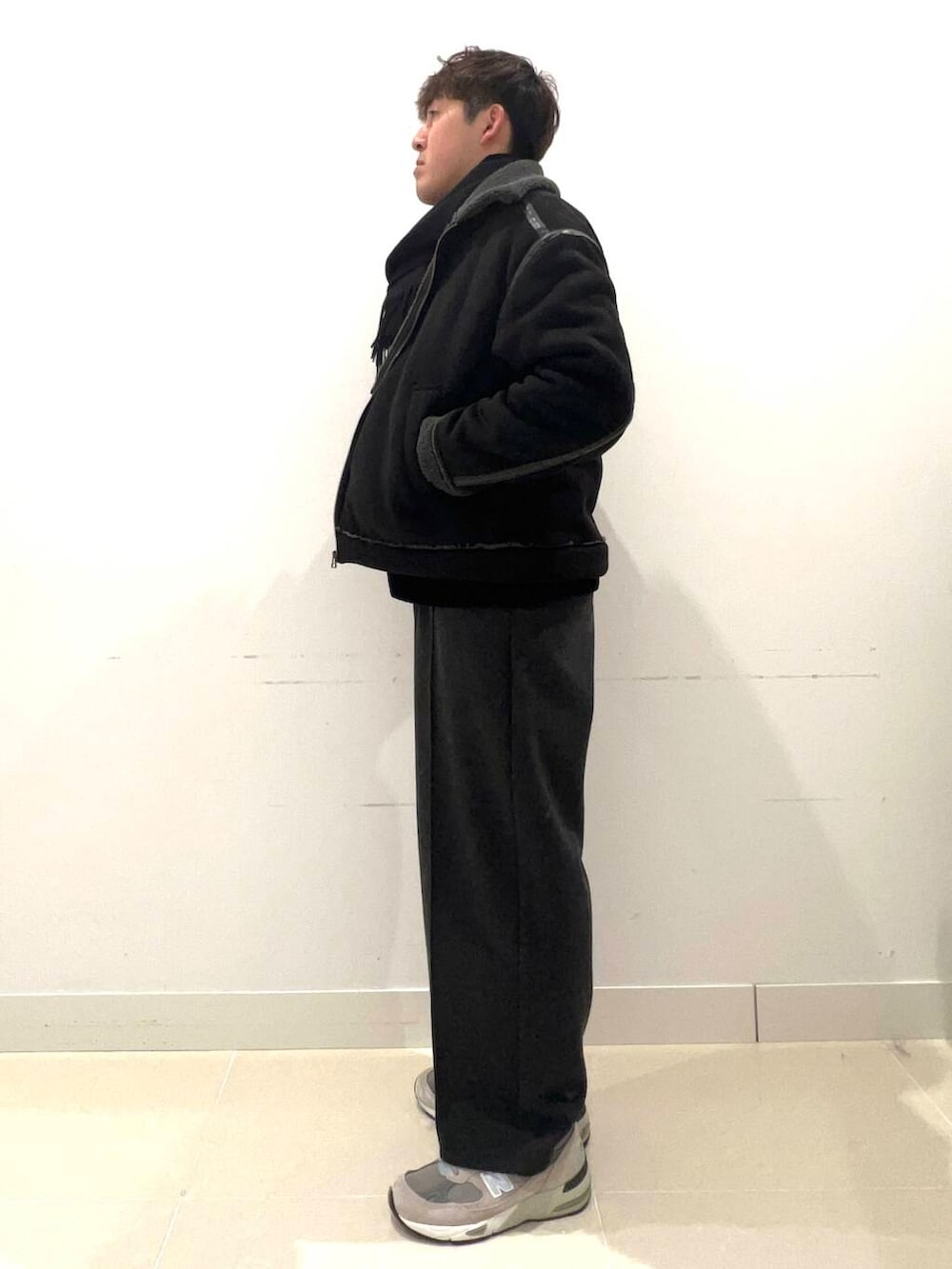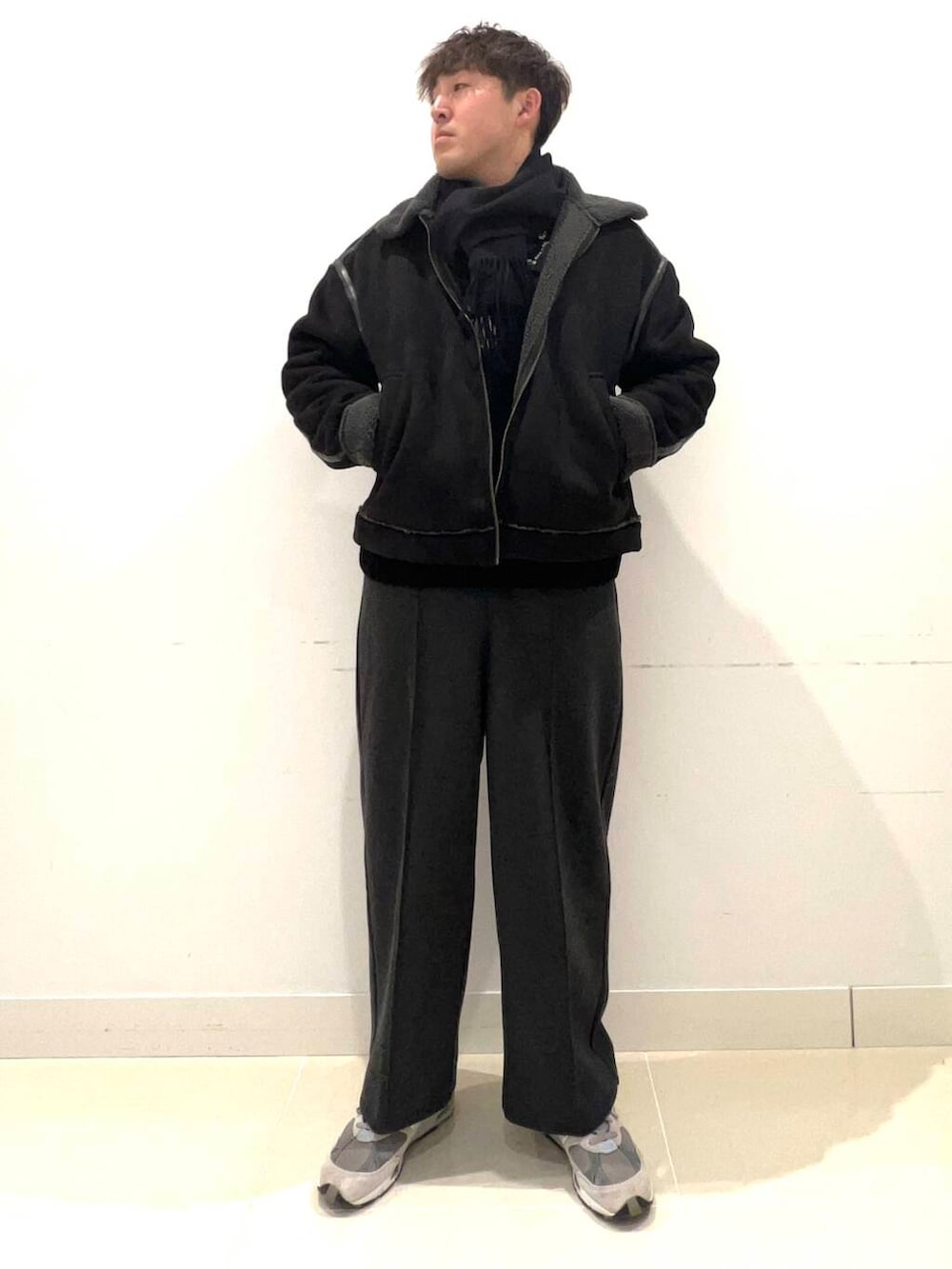 オールブラックコーデで、人気のムートンジャケットとメルトンパンツで冬コーデにしてみました!