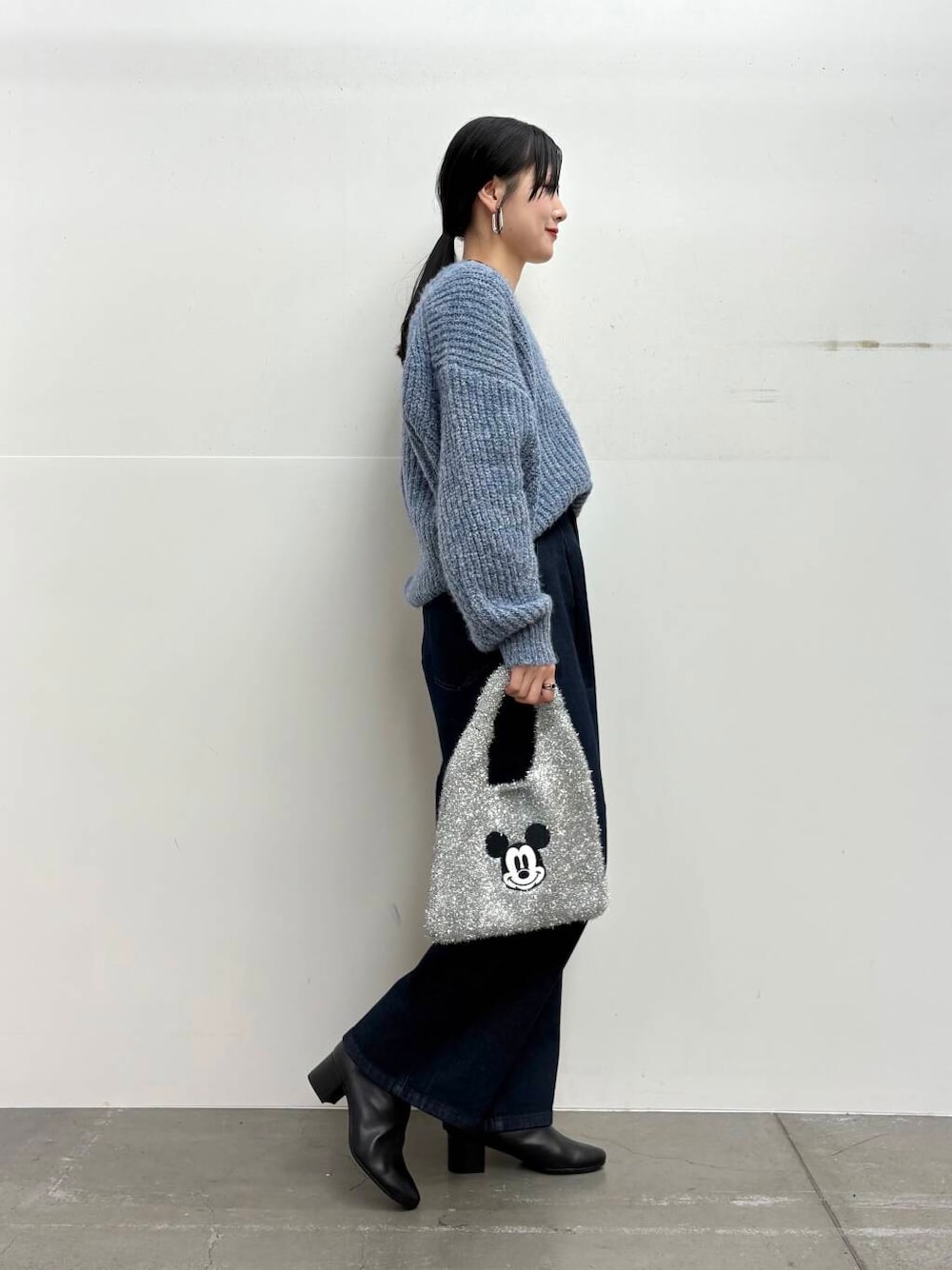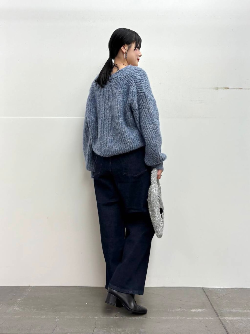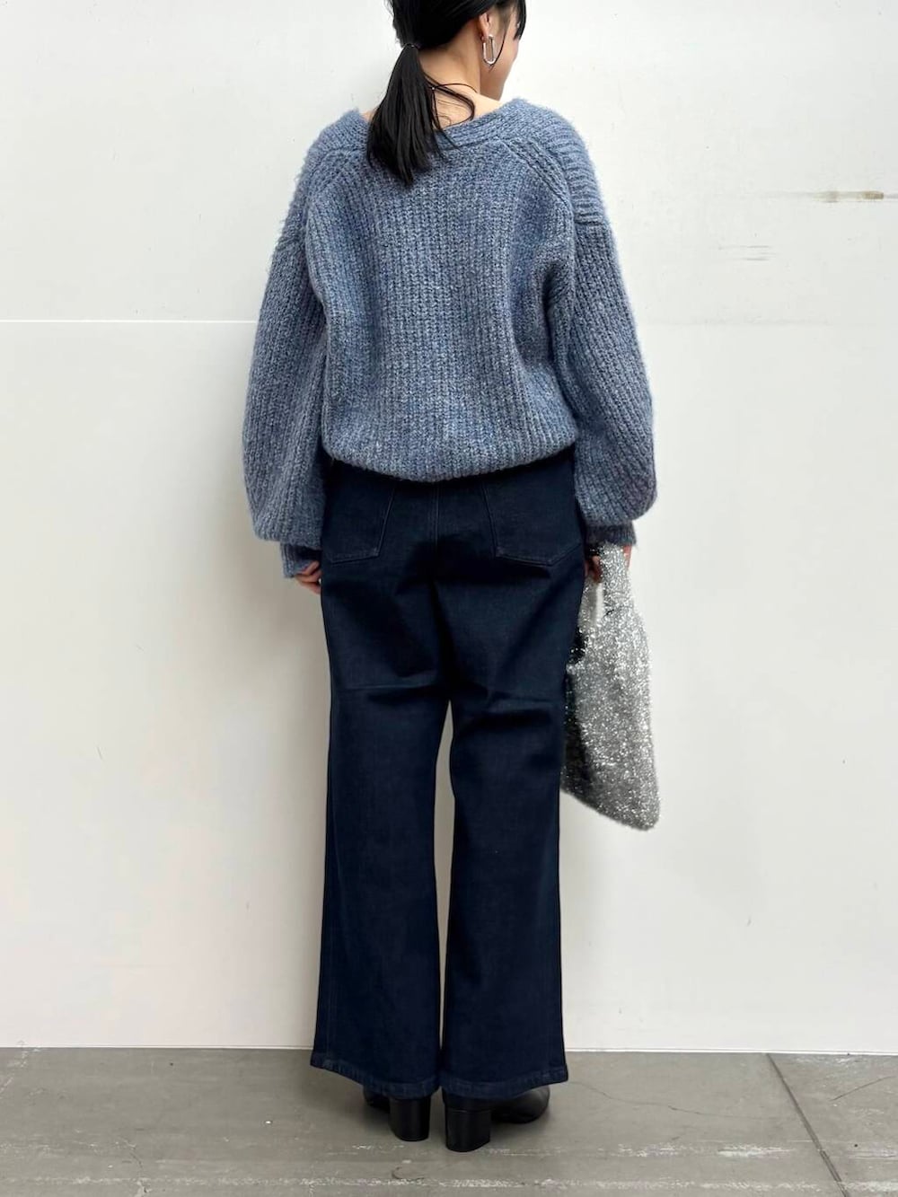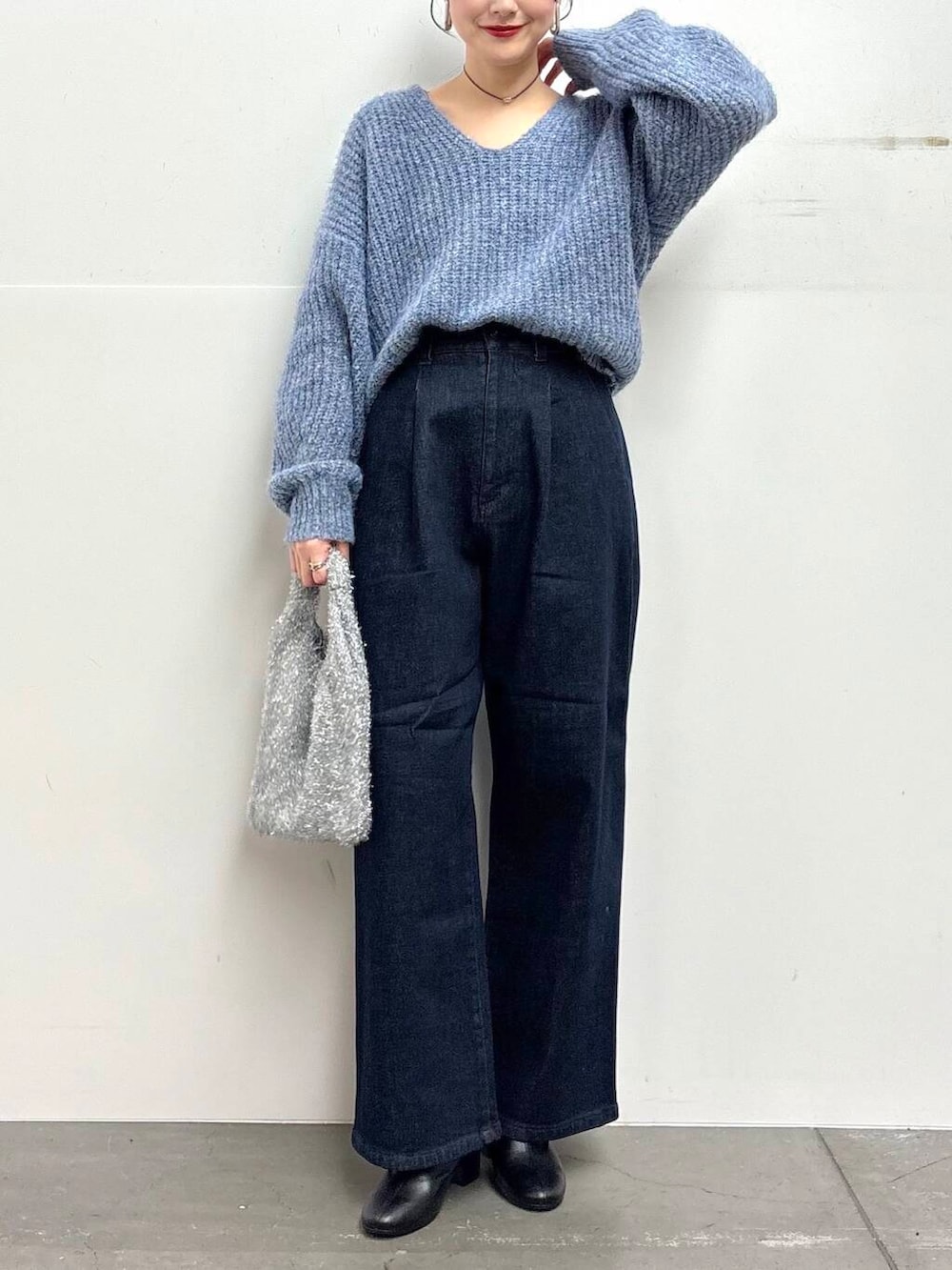ニットはVネックを選んでラフになりすぎないように。