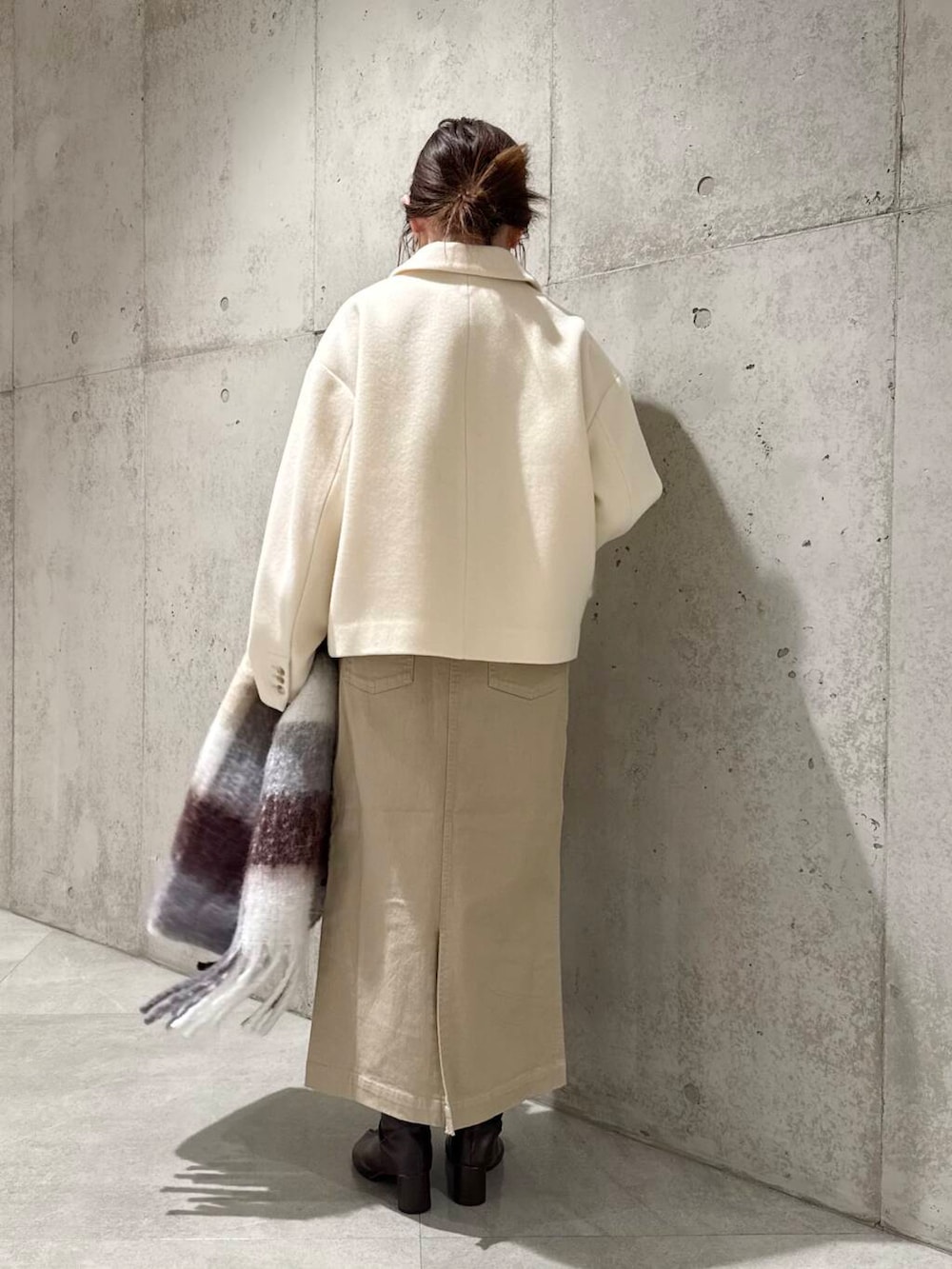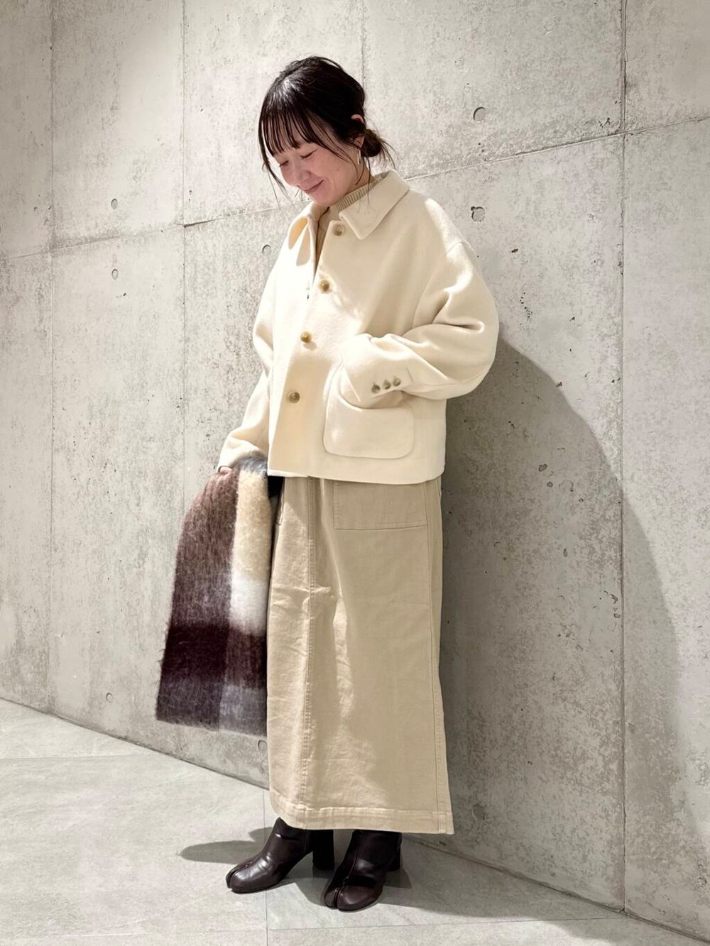 丸みのあるシルエットに、大きめのステンカラーが特徴のアイテム。