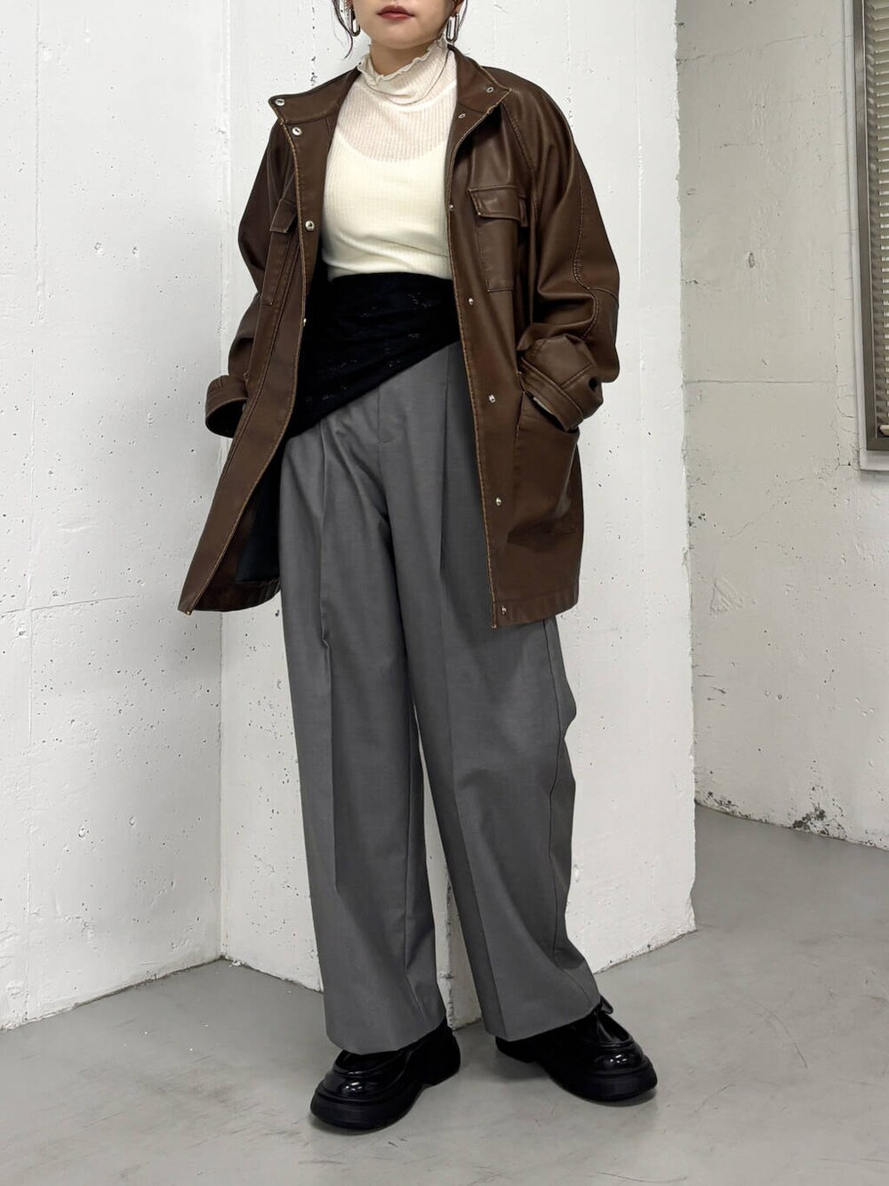 ミドル丈が合わせやすく、軽いのでラフに羽織っていただけます〇