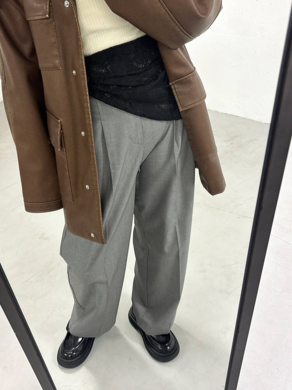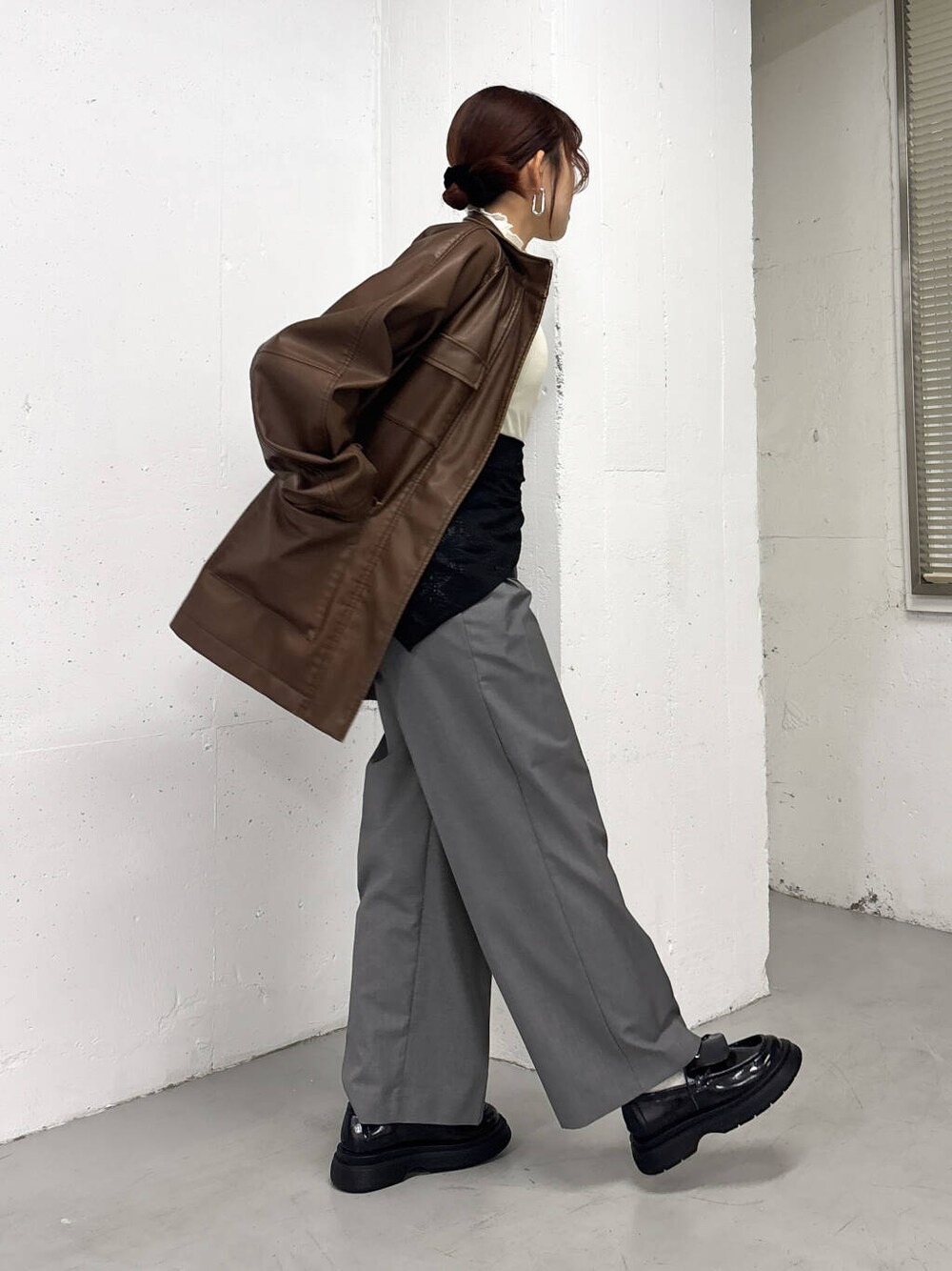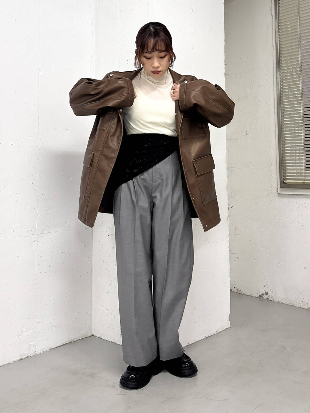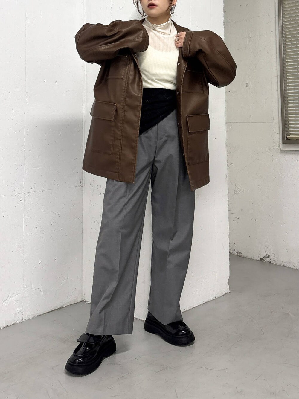 スカーフ付きのスラックスと合わせて大人カジュアルに^^