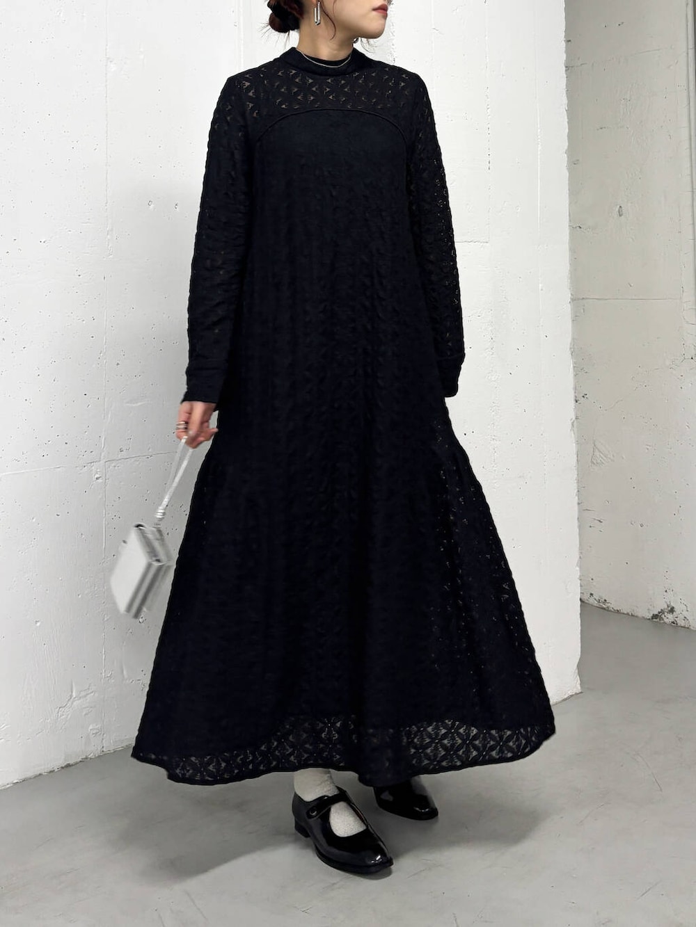 表面感のあるレースが可愛い大人なワンピース