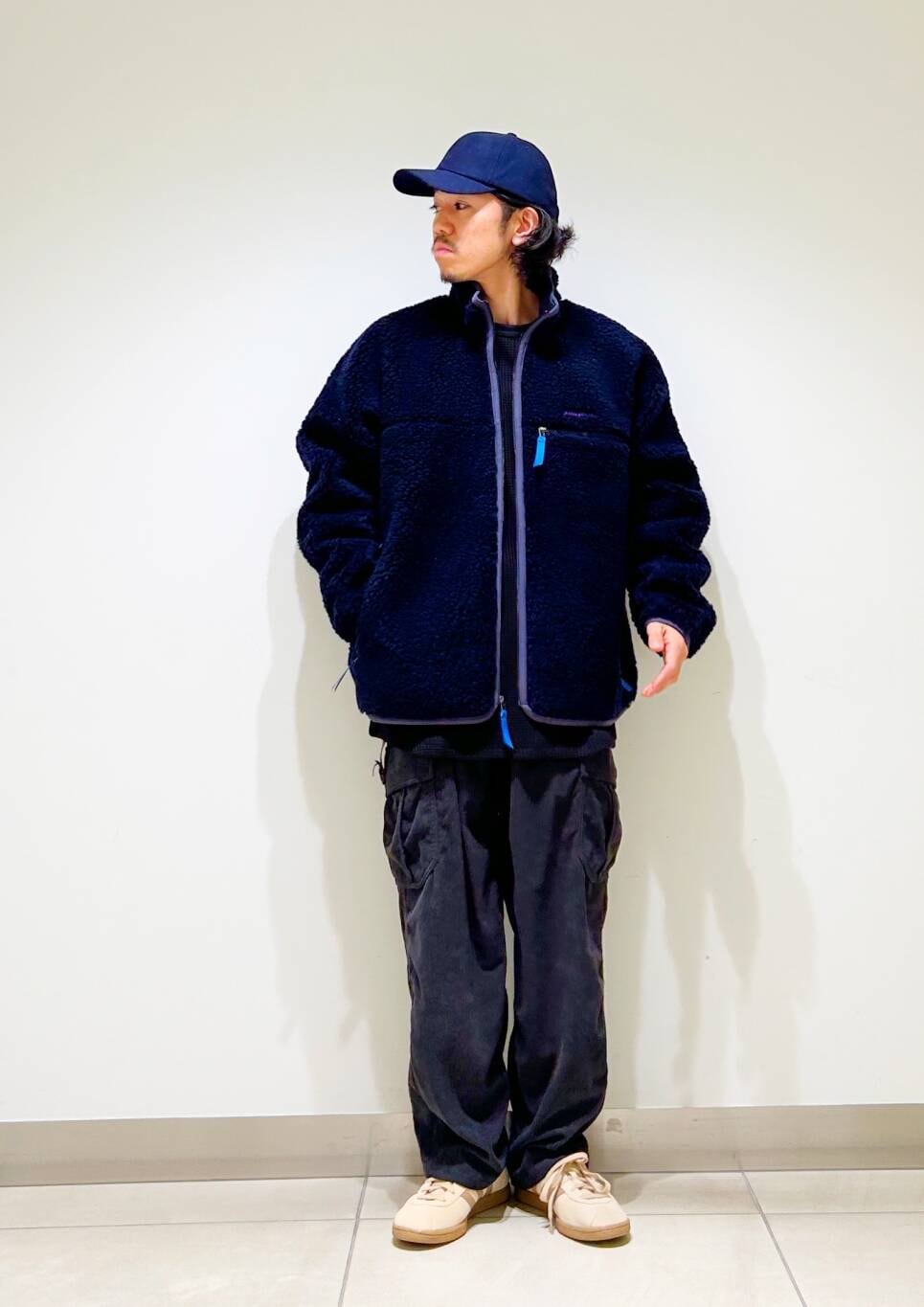 今回はpatagonia NaturalBlendRetroCardiganとコーデュロイカーゴパンツを使用したコーディネート。