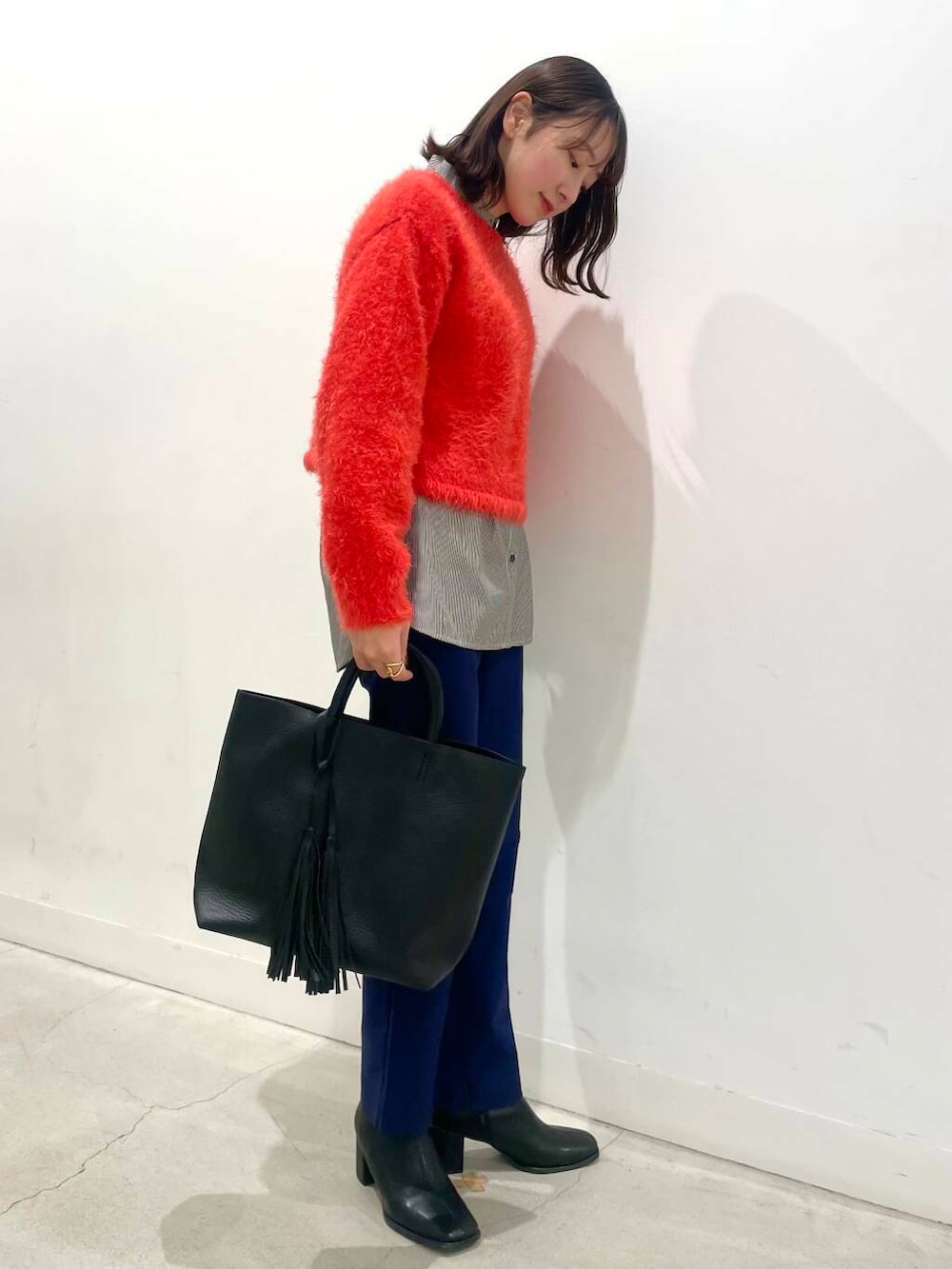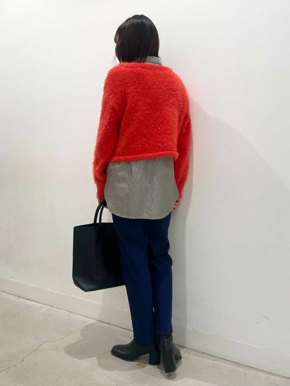 シャギーニットはクロップド丈なので、レイヤードスタイルもおすすめです!
