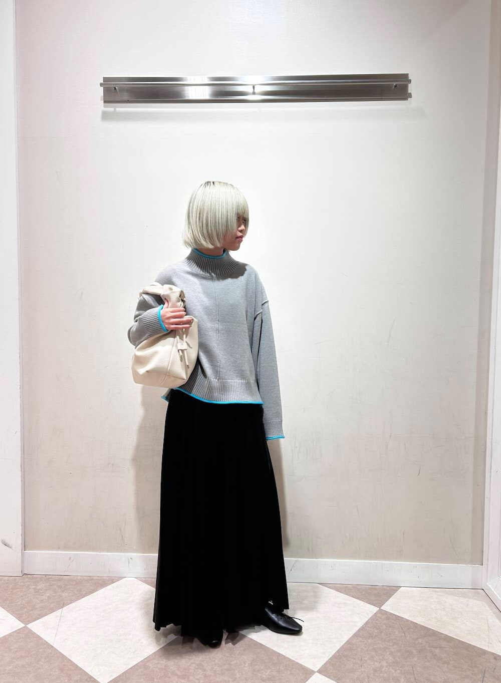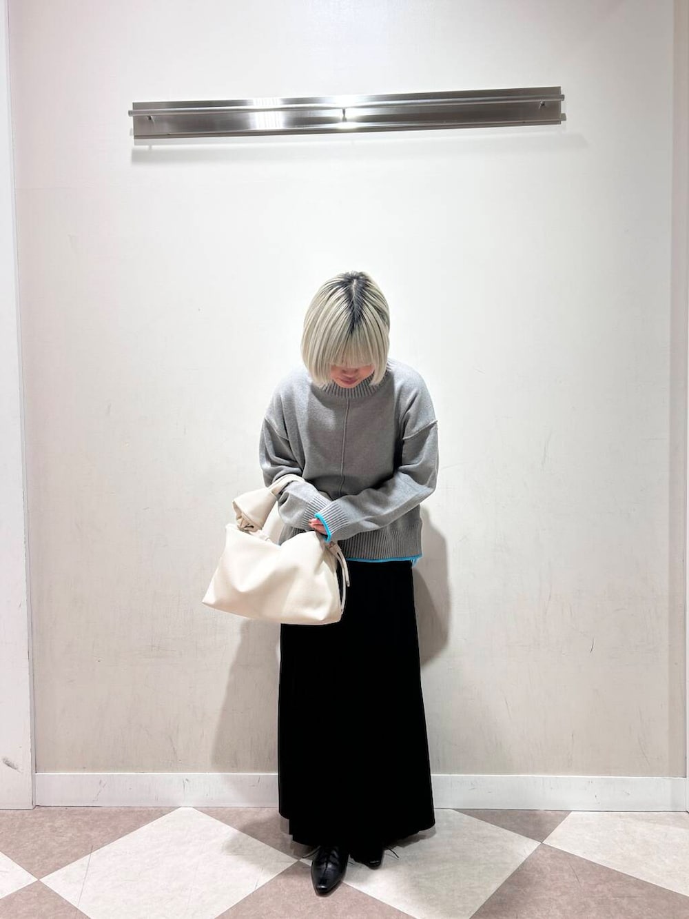 フェイクスエードプリーツスカートのブラック、生地感が柔らかくブラックですのでトップスを選びません!かっこよくも可愛くも仕上がるので使い回ししやすいです!