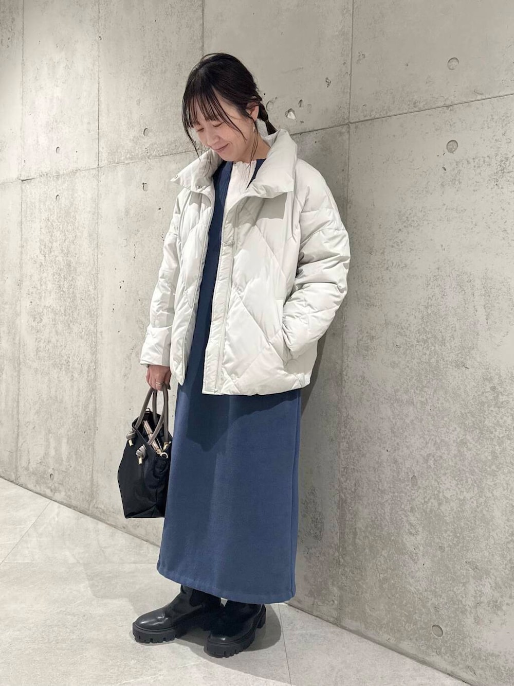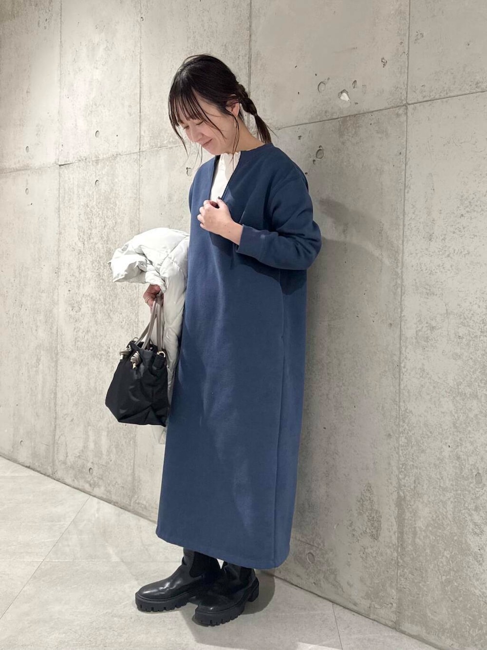 今回は、深めのVネックでレイヤードをお楽しみいただけるワンピースを合わせました。