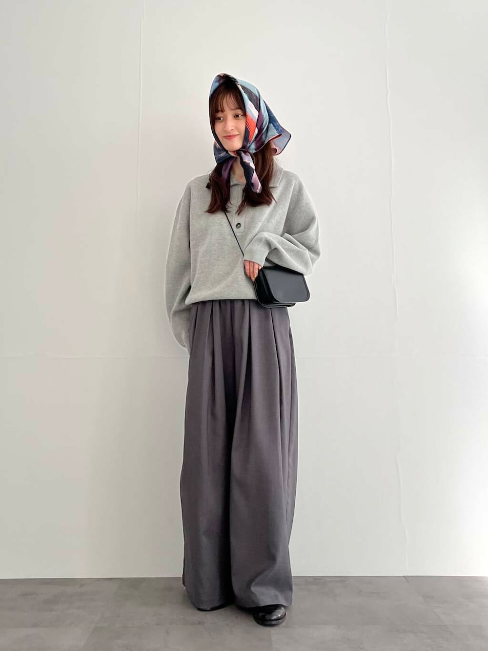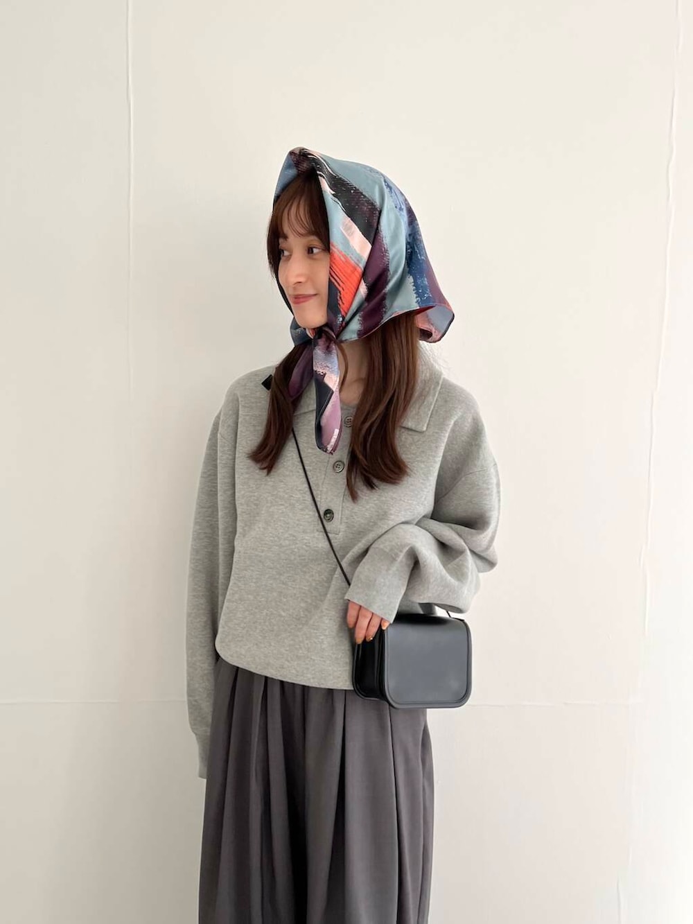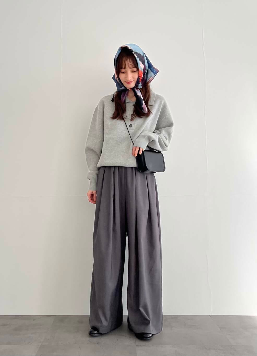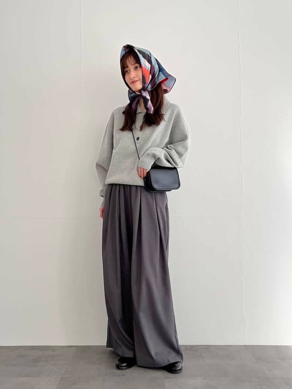 グレーのワントーンにバンダナをプラスし、シンプルすぎないコーデにしました♡