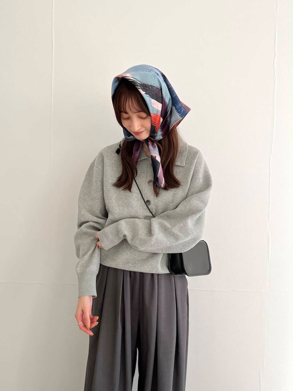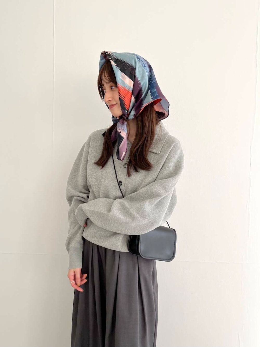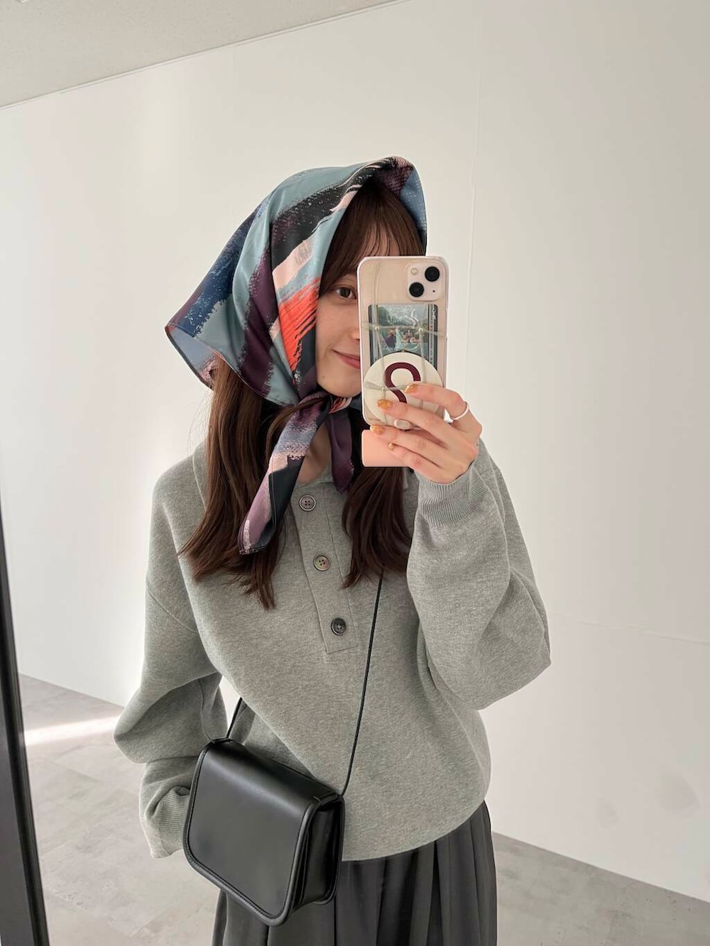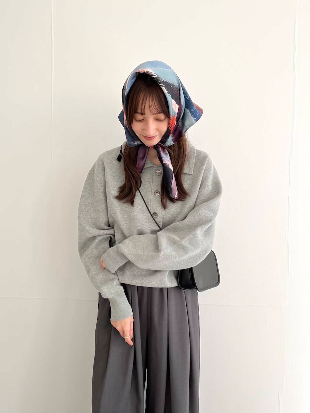 グレーのワントーンにバンダナをプラスし、シンプルすぎないコーデにしました♡