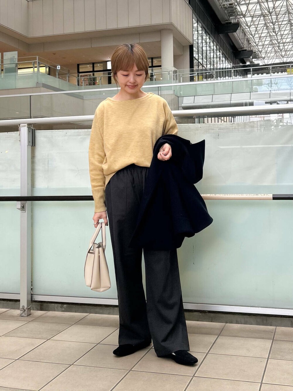 ボトムは春に大活躍してくれそうなサラッとしたイージーパンツを合わせました。