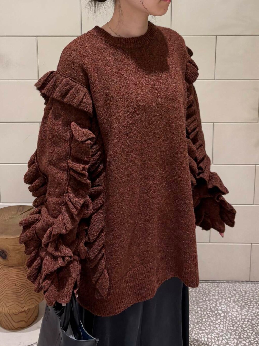 フリルが大胆に施された主役ニットです。
