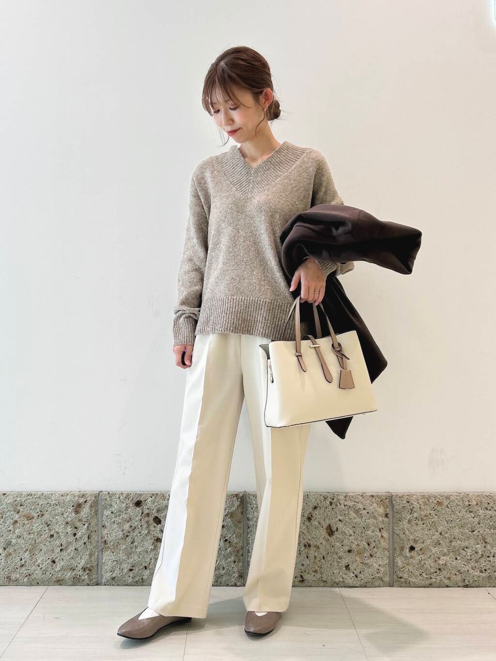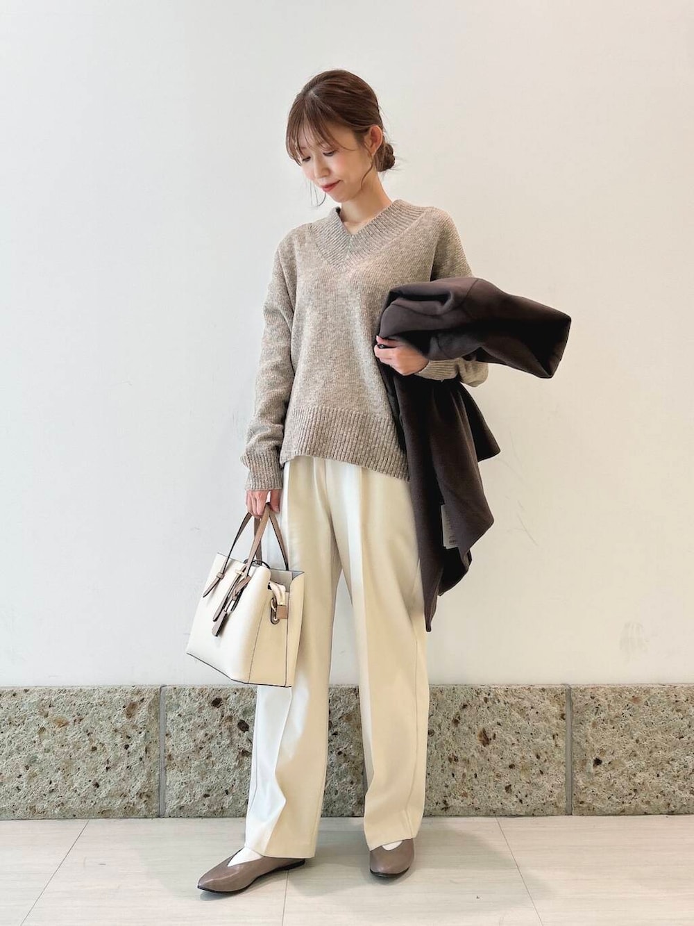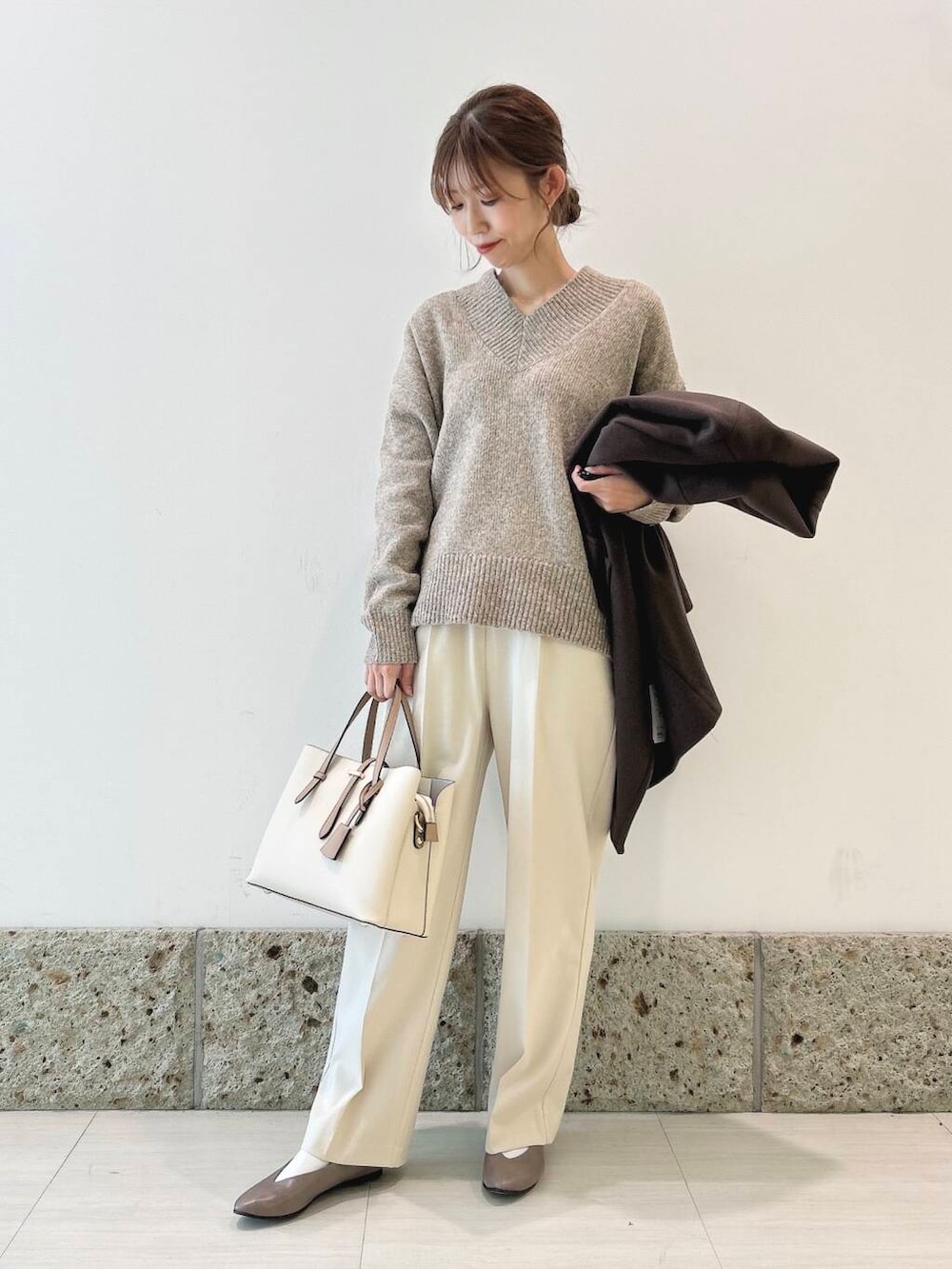 トップスのニットはVネックのラインが首元をキレイに見せてくれます✨