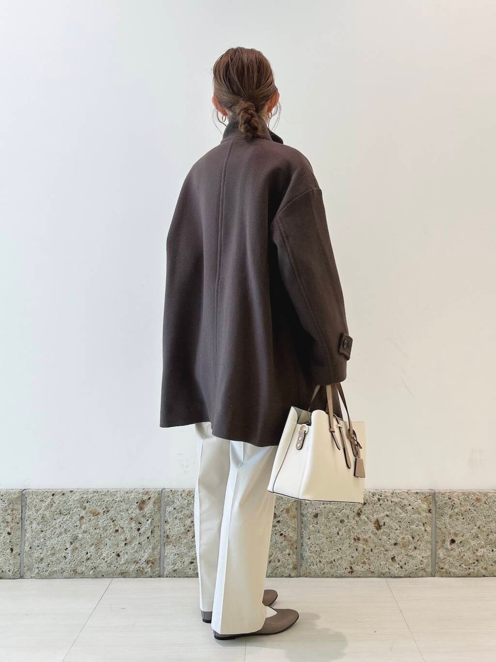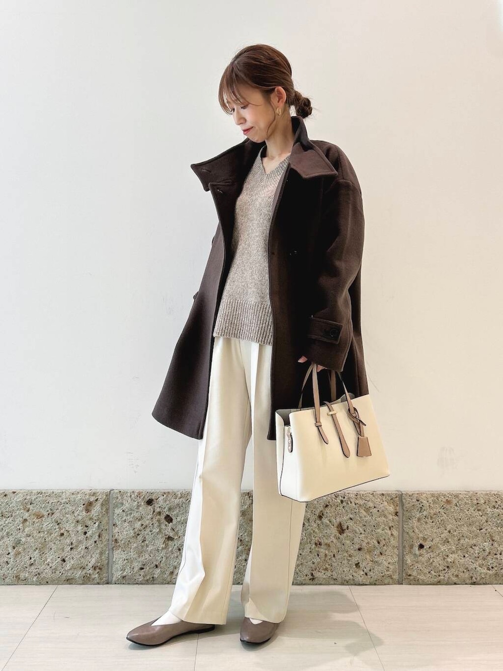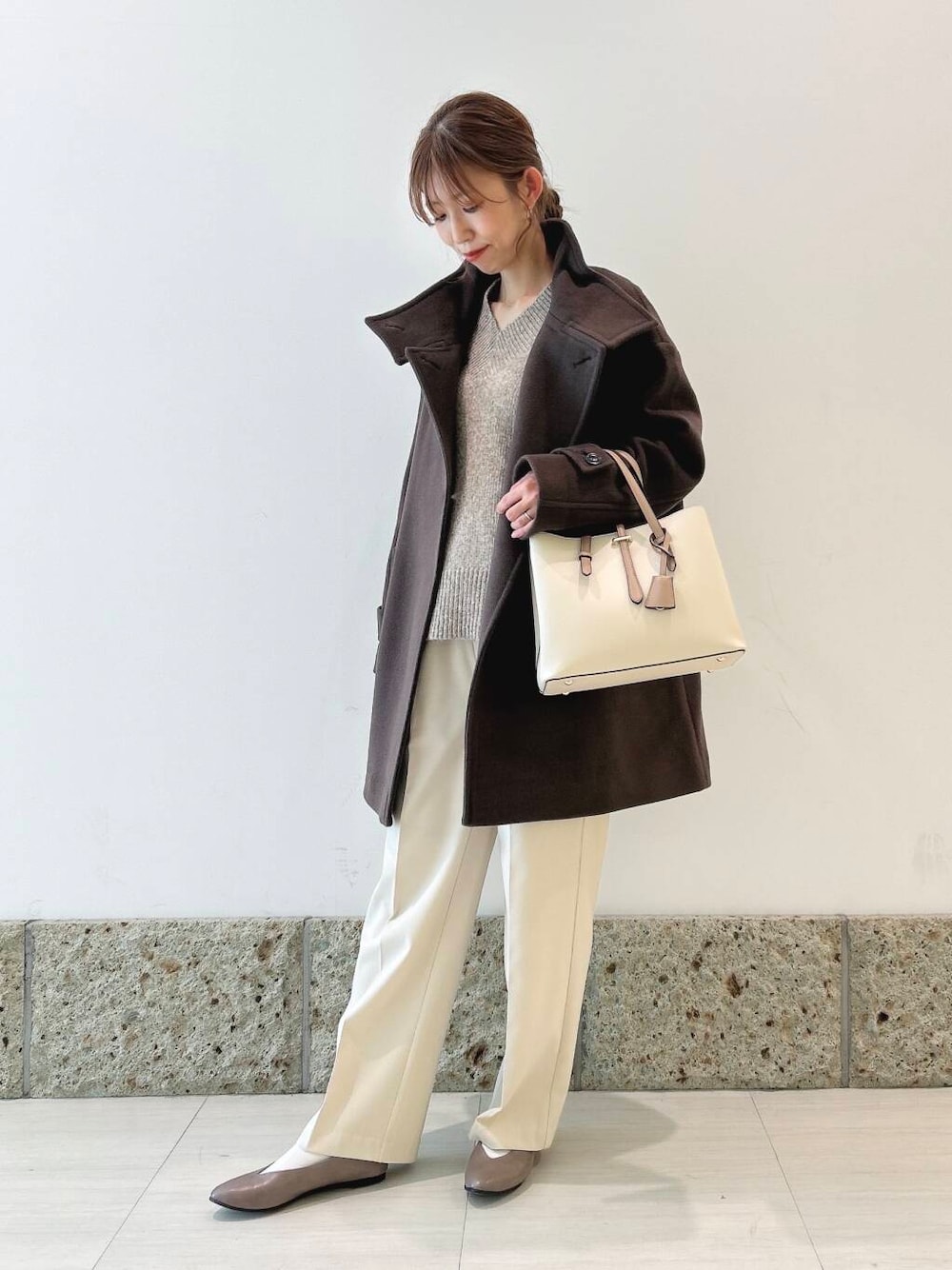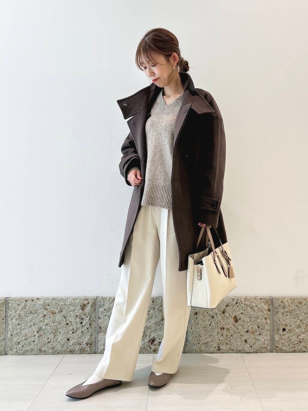 アウターは深みのあるブラウンカラーが大人可愛いコートを。