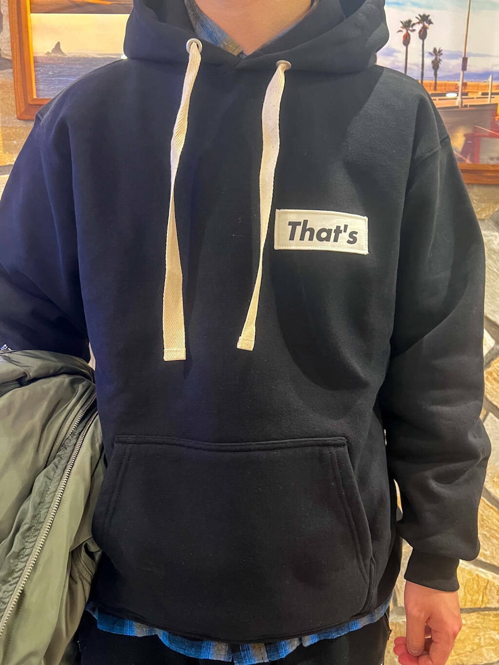 パーカーとシャツ合わせも相性抜群◎