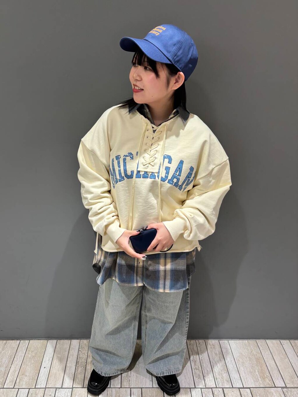 カジュアルなロゴスウェットにレースアップが施された新作アイテムです!裾や袖口は切りっぱなしのようなデザインになっているので古着っぽいリメイク風になっているのも可愛いポイントです🫶🏻