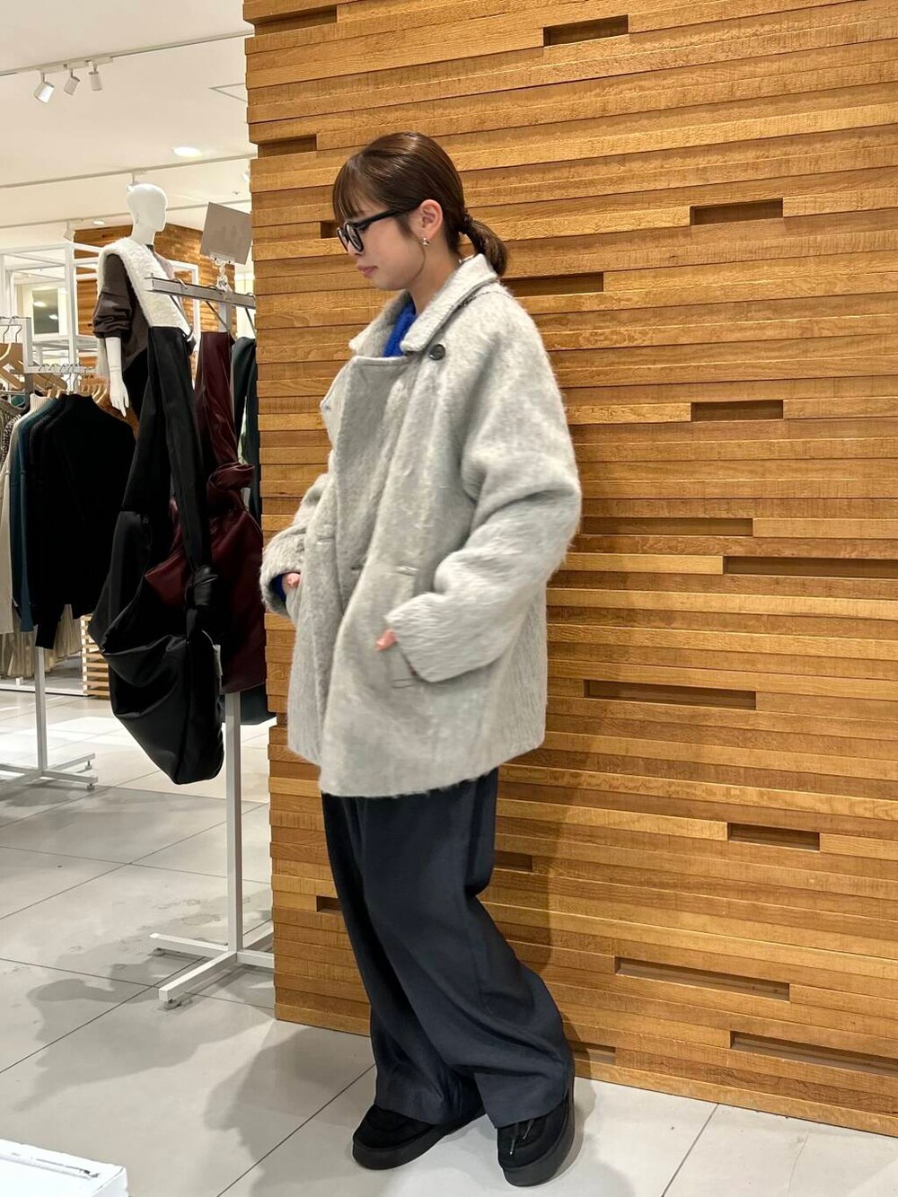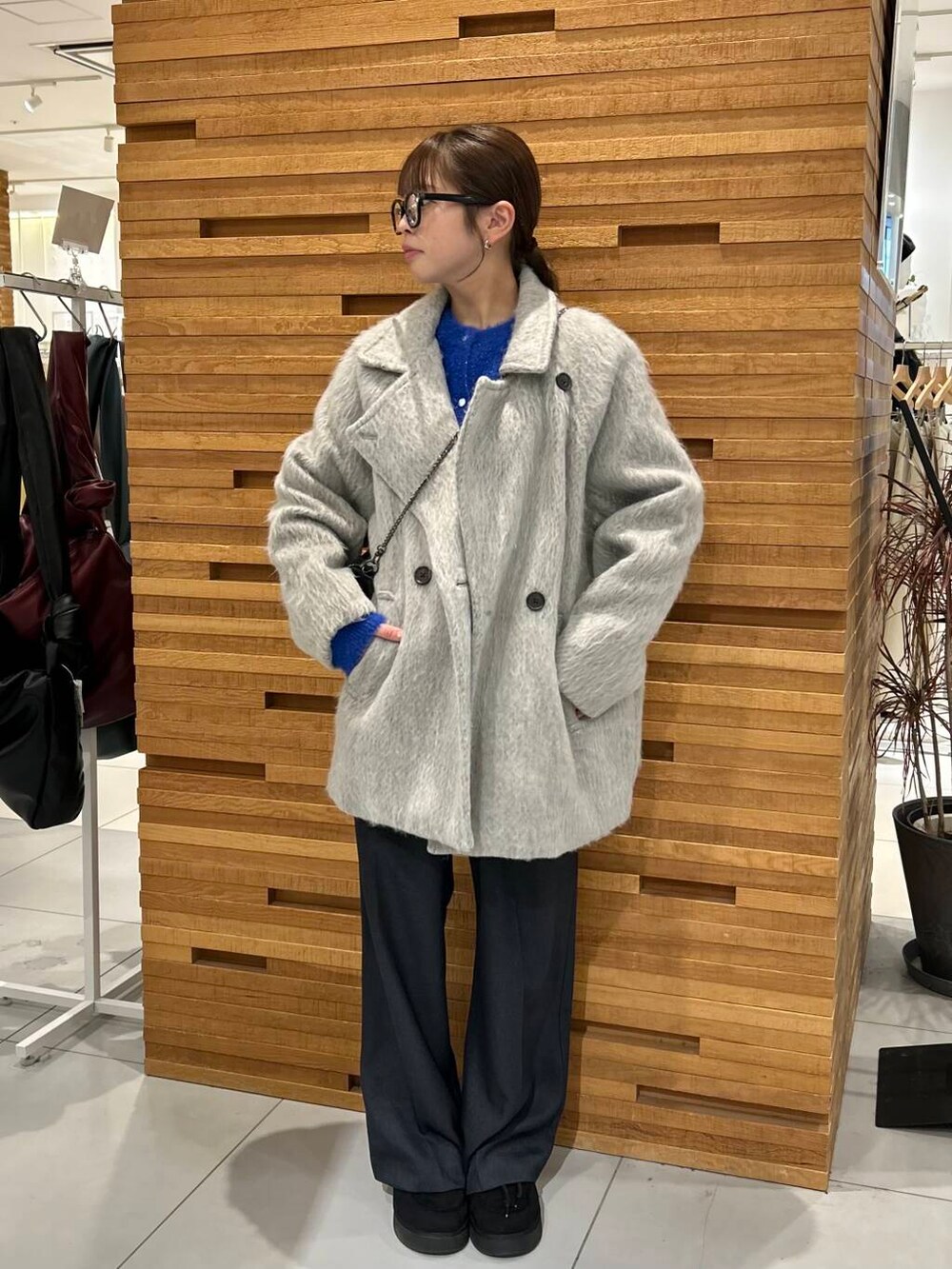 ミックスカラーがポイントの映えアウターのシャギーミドルコートでコーデ組んでみました^^