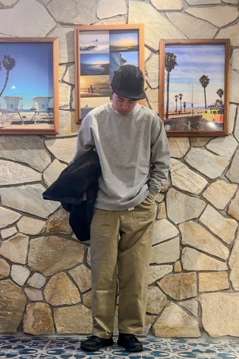 シンプルなスウェットにチノパンを合わせたカジュアルコーデ!